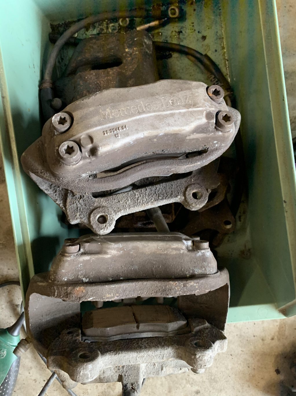 4-kolvs Brembo ok med tillhörande belägg. Mercedes. Minns inte modell tyvärr.