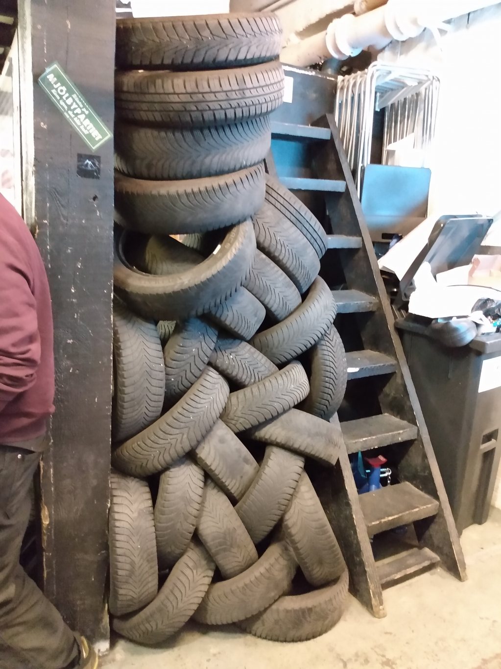Ett drygt hundratal 13-tumsdäck i mycket smala dimensioner, de flesta slitna eller gamla bortskänkes. Perfekta som barriärer på en gokart- eller räserbana eller liknande. Hämtas i centrala Stockholm. Alla eller inget. Bilden visar några av dem. PM: om du är intresserad.