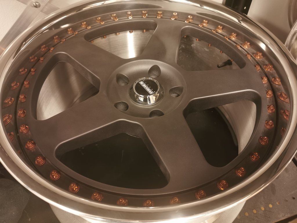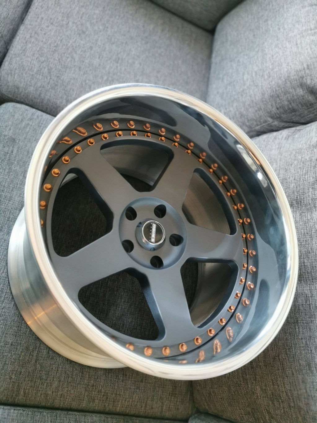 Ashes Wheels 2.8cf. 2 piece split fälgar. Grymma med rejäl bredd. Matt Gunmetal med polerad kant och rosé guld bult. Aldrig använda endast test monterade. Säljes pga husköp så bilen var tvungen att säljas. Dessa är inte fälgarna för dig som letar marknadens lättaste fälgar