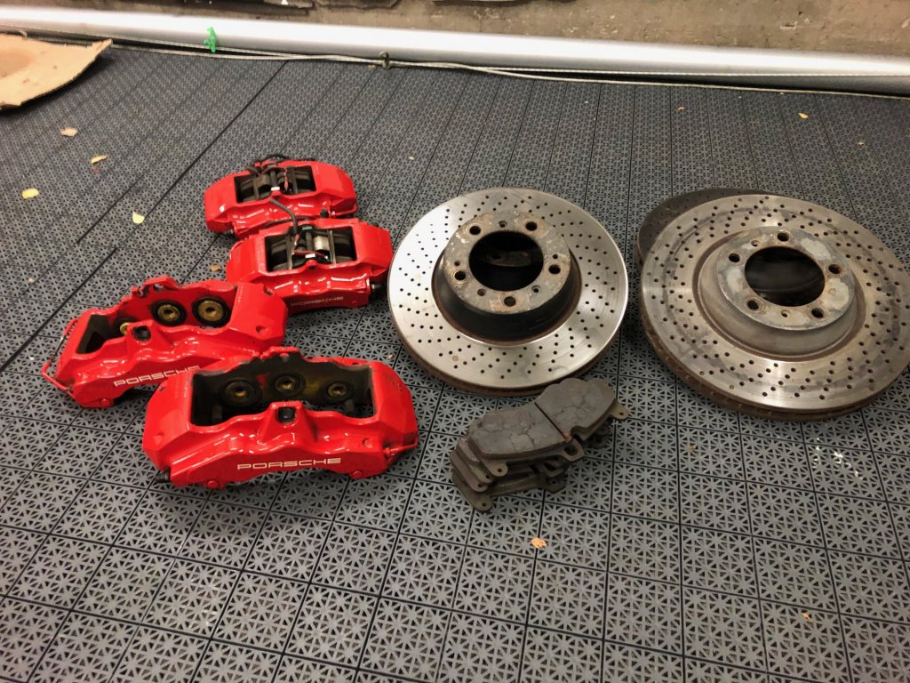 Hej! Tvära kast här, men drar en intressekoll på mitt alldeles nyligen införskaffade bromskit pga lite ändrade planer. Består av Porsche 6-kolvsok fram med 350x34mm skivor och 4-kolvsok bak med 330x28mm skivor. Artikelnummer på oken fram är 99635143190 och oken bak heter 996352425. Oken bak passar bl a E46 M3 fram med adapter och 345mm CSL skiva. Fint skick på oken, alla damsker hela och fina. Finns lite skav och andra smågrejer men på det stora hela fina. Beläggen bak är i princip nya, fram är dom sådär. Skivorna ser fina ut och har inte gått särskilt långt. Säljer helst allt som ett kit. Finns i centrala Västerås men kan levereras inom rimligt avstånd. Fler bilder kan skickas vid intresse. Pris: 15000kr PM eller 070 283 07 29