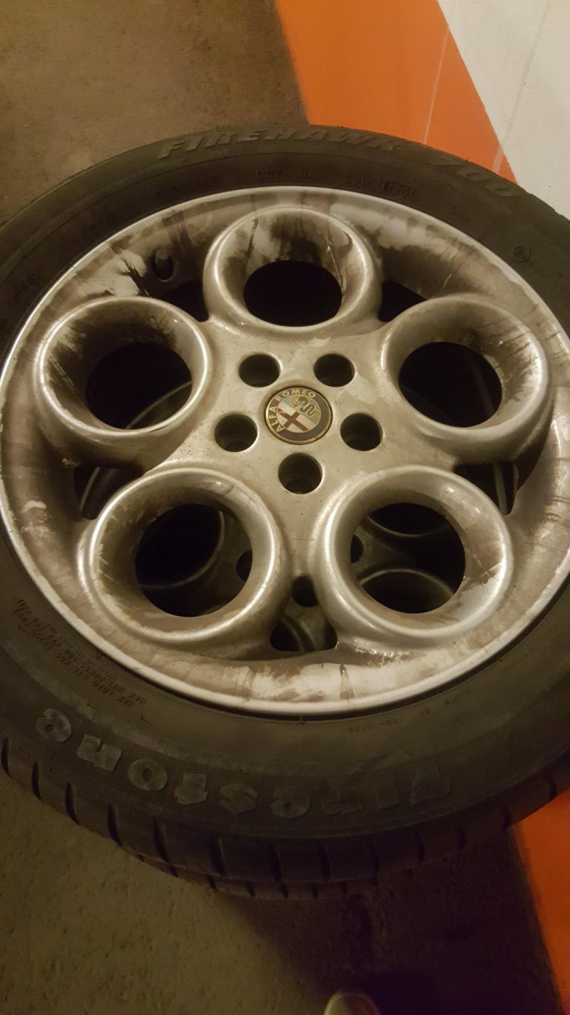 ***Sålda*** Har två uppsättningar kompletta hjui till Alfa 156/147 4-cyl: 4 st 15" dubbdäck på plåtfälg. Gamla men med hyfsat mönster. Snygga navkapslar. 500 spänn.
