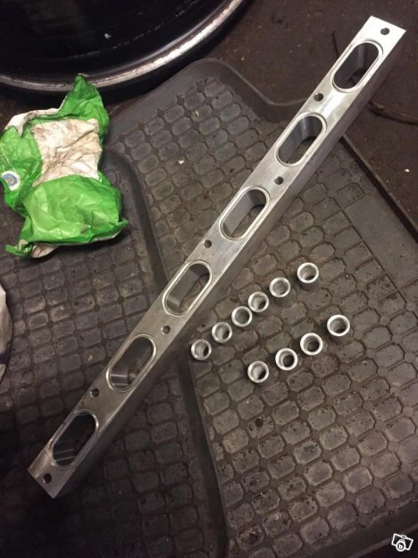 M50/M52 insugsfläns i alu med spår för gummitätningen. Ca: 30mm bred, så det går att dela på den och få två flänsar. Ingår 6st spridarrör i alu. Bra kit om du ska bygga eget insug eller adapter mot s50 spjäll. 500kr för allt. SÅLD Finns även ytterligare 4st spridarrör. 200kr