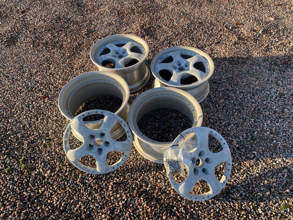 Goa splitfälgar som passar Audi och Mercedes. Dom är blästrade och klara för lack, detta kan ombesörjas om så önskas. 112/5 5/112 112x5 5x112 10,5" bak 9" fram Centrumhål 57mm ET 25 eller 30 beroende på vilket centrum man sätter var. Komplett med bultar och skruvventiler. Ta dom som dom är för 5000kr Eller lägg till 2500kr och få dom pulverlackade i valfi kulör. O7O-2864736