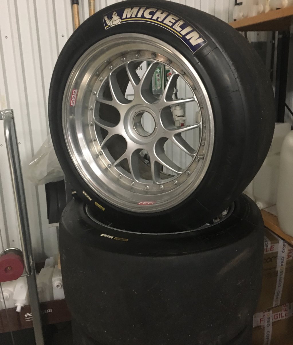 BBS E88 centrumbult fälgar utan däck. Kommer från Porsche 997 cup och är i bra skick och ej skavda på ytterkanterna. Fälgbredd: fram 9.5x18" och bak 12x18". Pris 25 000:- De finns även 2 st Michelin Porsche cup slicks 30/68-18 med en hel del kvar att åka på. Pris 1200:- för båda. Kontakta mig på Mail eller telefon 0700-666577 Mvh Kristian Finns i Jönköping men kan Skickas [/img]