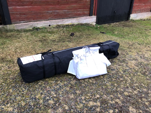 Racingtält/Partytält/Motorsport, 6x4 meter, fälls som ett dragspel, med klicksäkring i uppfällbart läge. Ställbar höjd. 4 st tältsidor medföljer, varav en med fönster, en med ingång, öppnas/stängs med dragkedja. Fordral, ca 2 meter långt ihopfällt läge (se bild), ca 50 kg. Finns i Västerås. Nypris ca 10.000 kr, säljes för 3.500 kr.