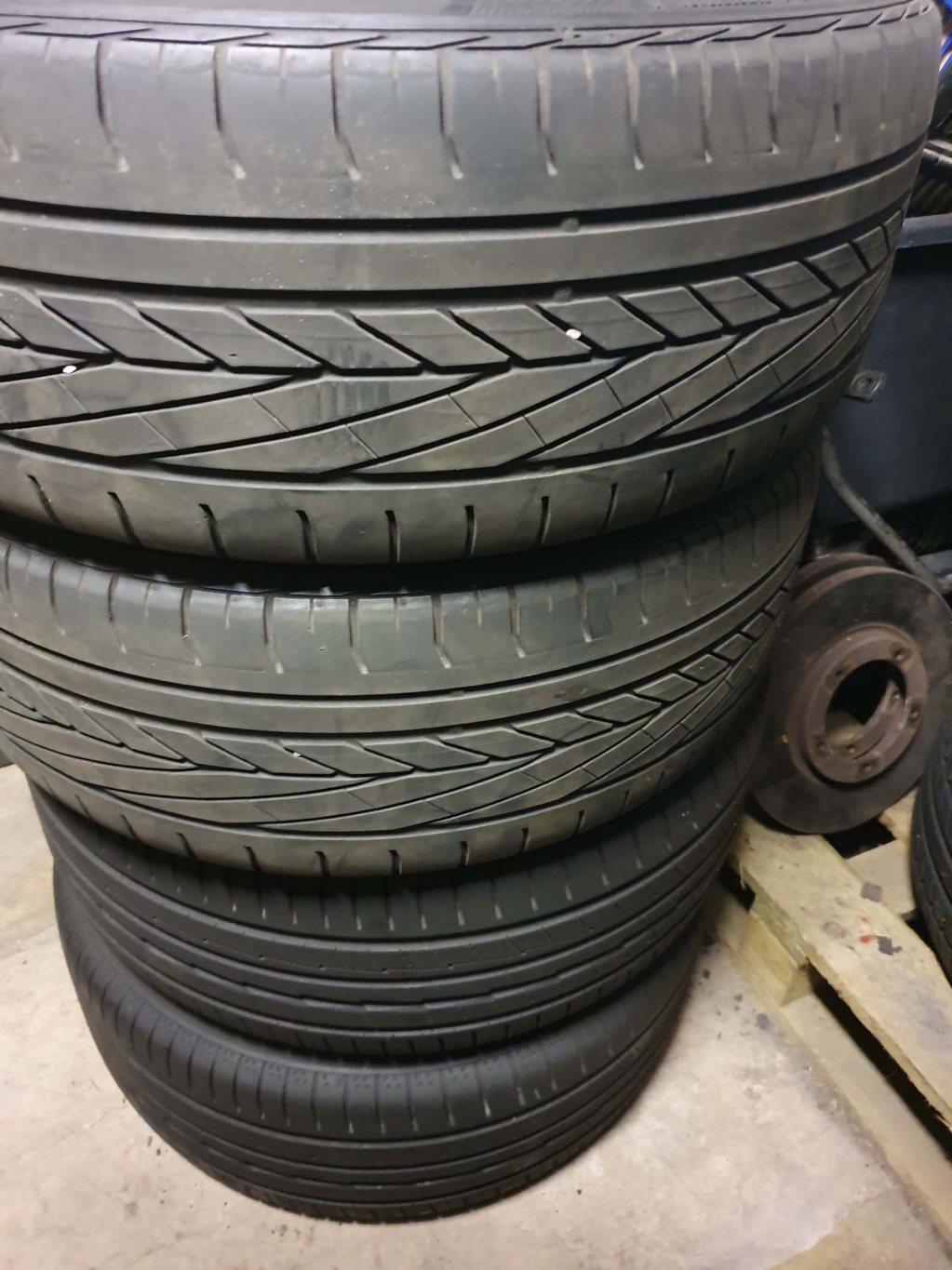 Har en omgång Cup-1 2 st 17*7 med äldre däck 205/55 2 st 17*8 med i stort sett nya Yokohama 225/50 Fälgarna behöver lite ny färg. Ge mig ett vettigt bud. Finns i Kinna, skickas inte, bjuder på kaffe