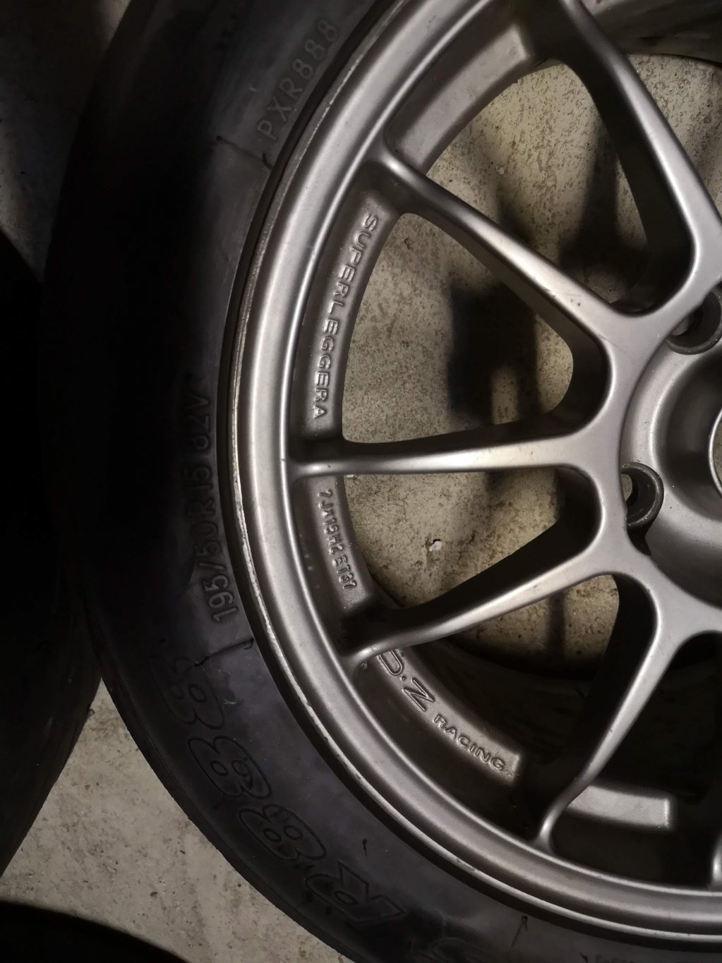 Jag har lite delar över från min Super 7:a som är såld - vi börjar med 6st supelätta OZ Superleggera i dimension 7x15" med ett ET på 37 - 4x108 bultcirkel: Dom 4:a som det sitter R-däck på är helt OK förutom färgskav. R-däcken som sitter på är gamla - 195/50-15 - och med ganska dåligt mönster så får anses som "lekdäck". Resterande 2st hade jag som "garagehjul" till bilbygget - kantskador etc på dom fälgarna, men kan väl anses som reservhjul.. Ge ett vettigt bud om Ni är intresserade av marknadens lättaste fälgar av ett erkänt bra fabrikat! Skicka ett PM med telefonnummer så svarar jag så snart jag kan. Skambud svarar jag inte på såklart. Avhämtning antingen i Helsingborgsregionen eller ev Malmöområdet efter överenskommelse - skickas inte. Ha en bra dag!!