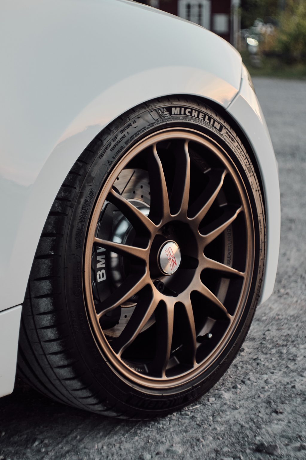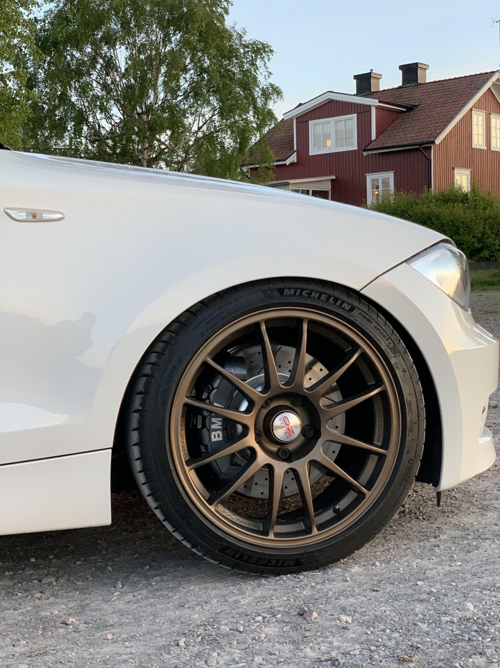Hej! Har en fin uppsättning oz superleggera fälgar i 18" 5x120 18x8 et 38 225/40r18 Michelin ps4 245/35r18 kumho ecsta Ca 5mm fram, bak lite mer! Nyligen lackerade i brons med matt klarlack. Nästintill samma kulör som TE37 fälgarna. 10500kr eller bud. Kan även ta andra 18" i inbyte till BMW. Finns i Oskarshamn.