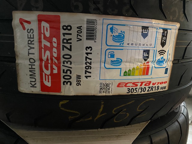 Äkta GT2 fälgar (8,5x18, 12x18) med nya Kumho R-Däck, 245/305, däcken är tillverkade sent 2013.