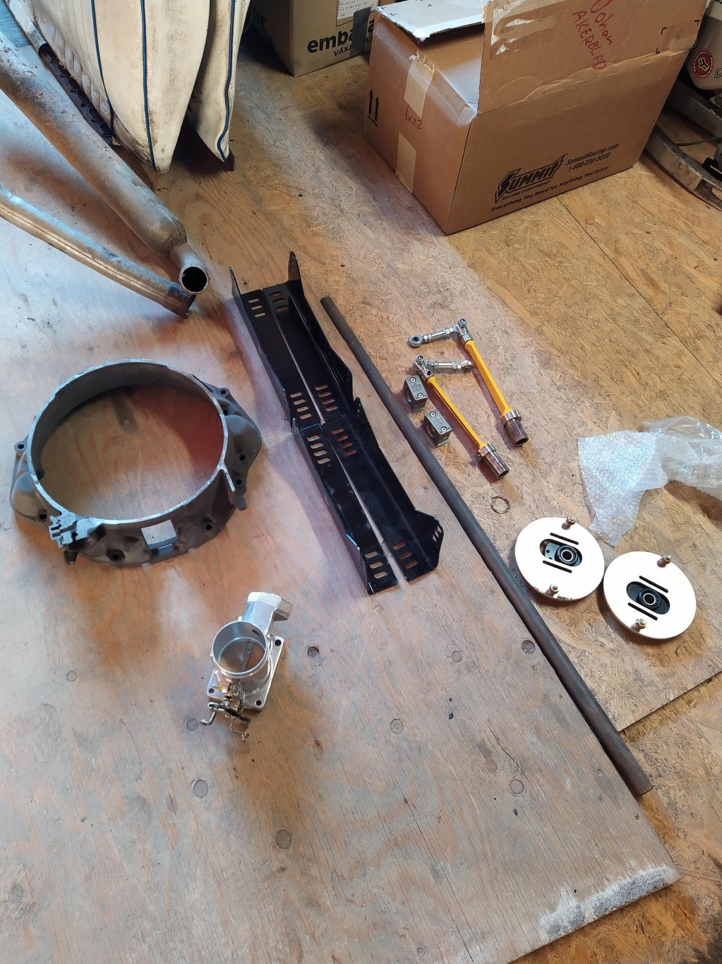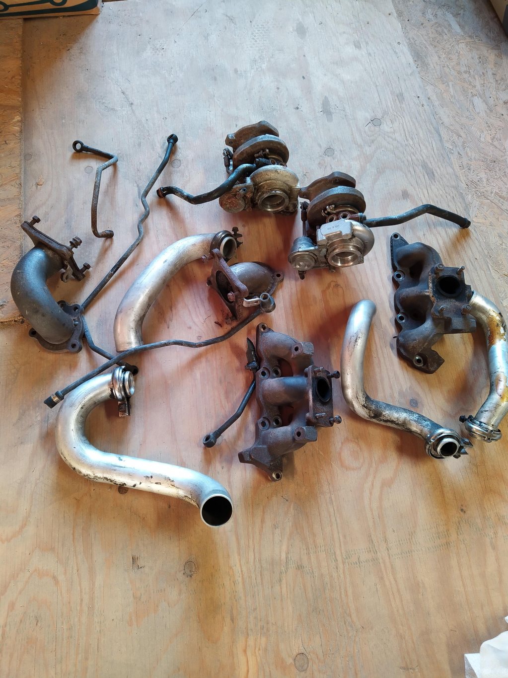 turbokitt från en Volvo t6. Komplett med grenrör, turbos, flänsar till olja o vatten, laddtrycksrör, downpipes mm. Perfekt för att turbokonventera din 960 motor eller liknande. Pris SÅLT. Knivkrängar byggsats köpt på finess, 240mm knivar och 30mm rör. Oanvänd men legat några år så lite märken och ytterst ytrost har kommit som går att putsa av. Nypris 4800kr. Mitt pris SÅLD. BC racing topplagringar till 740 / 940. Ställbara. Kommer från ett par BC coilovers men passar säkert andra fabrikat med. Pris SÅLDA. Qsp stolsfästen låg modell FIA godkända. Har två par. Pris 300kr/par BMW M60 / m62 sprängkåpa / svep. Avkapad från en automat låda. Perfekt för att använda när man ska svetsa om en låda. Pris SÅLD 76mm / 3" spjäll. Köpt på kl racing. Ska passa på Ford v8 5.0 1994-1995. Uttag för både tomgångsmotor och tps. Pris 250kr. Grejerna finns strax utanför Göteborg och kan skickas. Kontaktas lättast på 0730265841