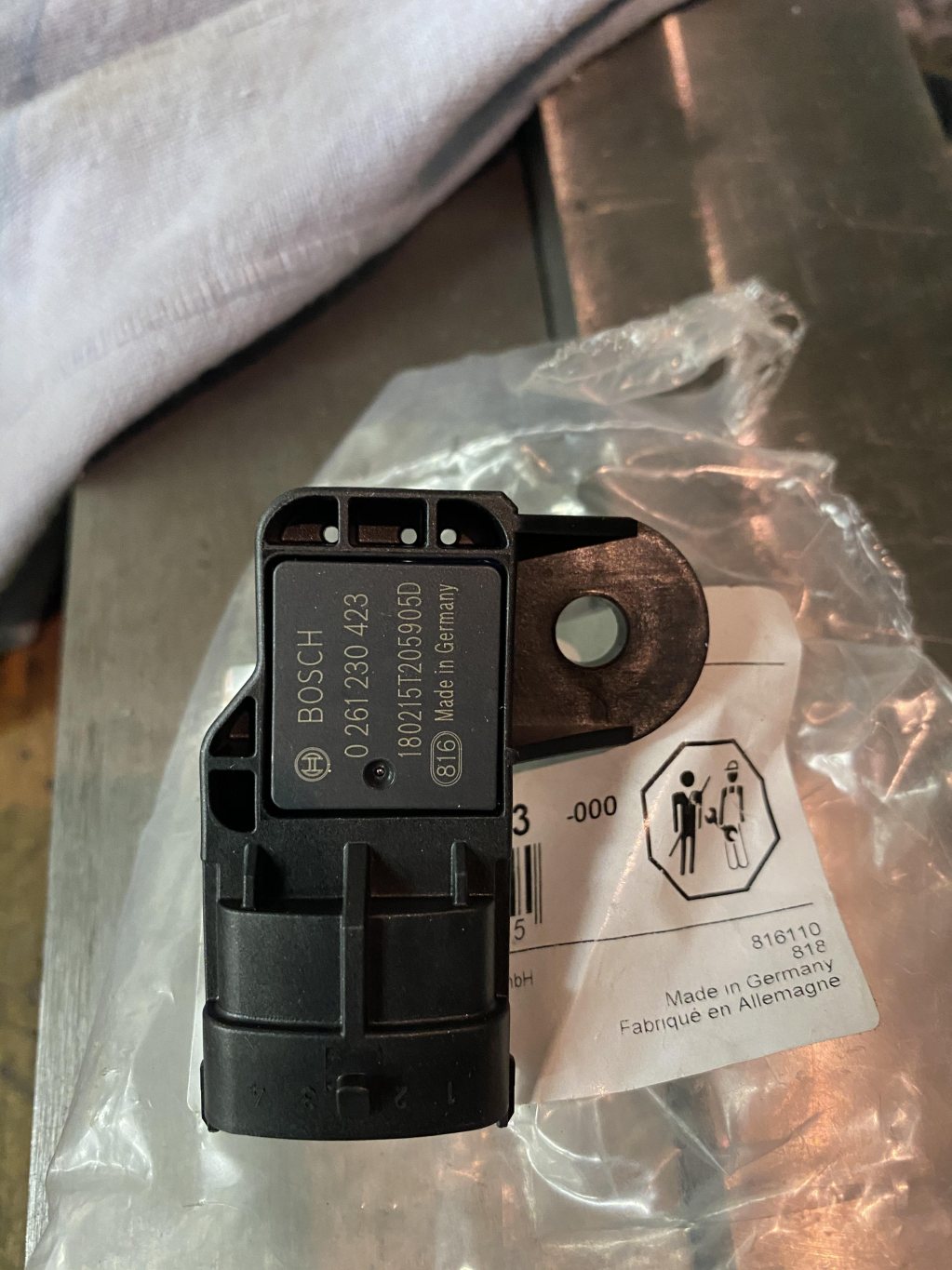 Bosch map sensor 0261230423 Measuring range (bar): 0.31 - 3.72 (31 - 372 KPa) , Number of ports: 4 , With integrated air temperature sensor (NTC) Ny i förpackning , inte ens provmonterad . 325:- inkl frakt i vadderat kuvert. Pm eller noll sju noll 88 00 225