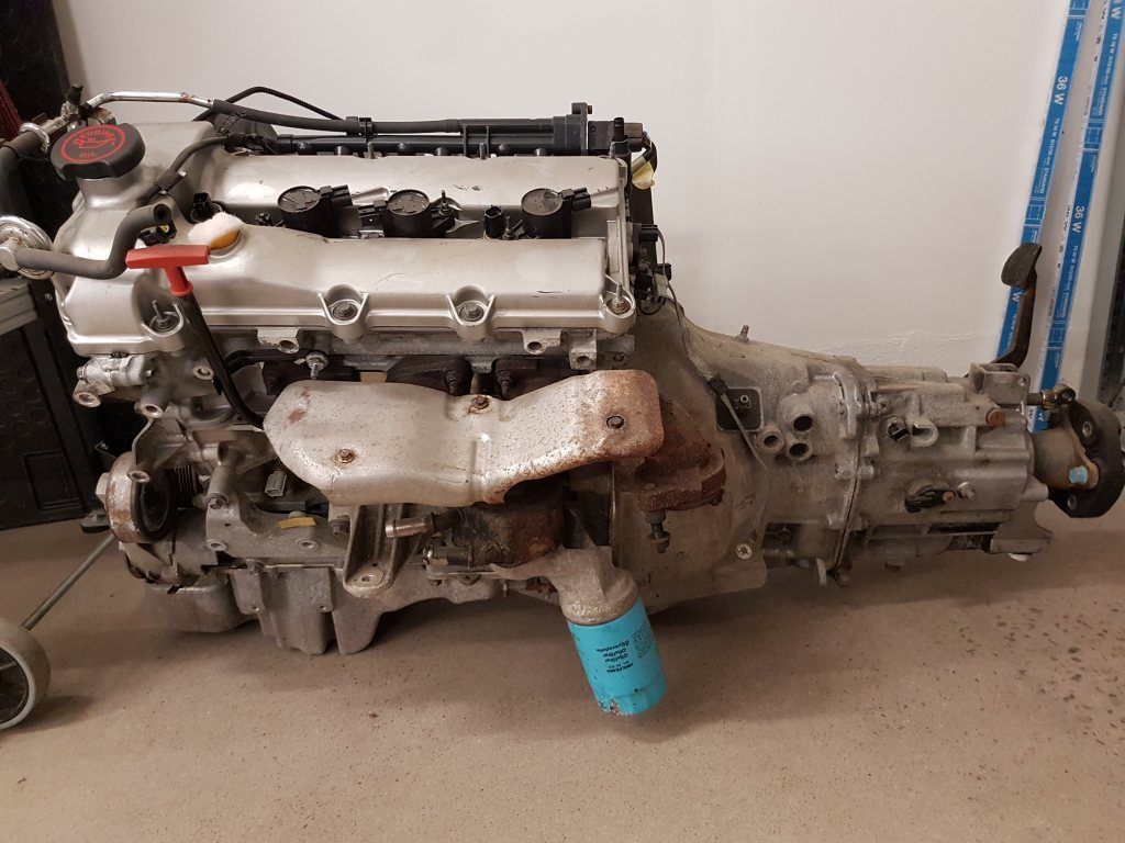 Har en drivlina till en Jaguar S Type 3.0 2000 års ca240hk Komplett motor med . Generator . Servo . AC . Kabelhärva (ej styrbox) . 2 katalysatorer . 5 växlad manuelllåda ink kopplingspedal . Kardanstång bilen hade rullat 18000mil innan jag plockade ur den. Skulle ha delarna i en annan bil som nu blivit såld. Perfekt att stoppa ner i en Miata mx5 mx-5 super 7 kit car eller byt ut den gamla trötta v6an i en ford Vid miata bygge köp delar från https://www.rocketeerltd.com/ eller bygg själv. Kan skickas i pall med Schenker Pris 10000kr Tele nr 0761188017 Magnus
