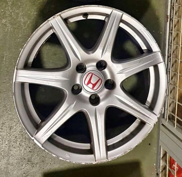 4 st 18" original fälgar till honda civic type R ET 55 5x114,3 Fälgarna välanvända och är i behov av ytlig renovering men duger fint till banåka däcken eller liknande. Ligger i vägen i garaget. Finns i södertälje och kan mötas upp längs med E4 / E20 vid södertälje. Pris : En tusenlapp för alla fyra. PM eller noll sju 08 800 225