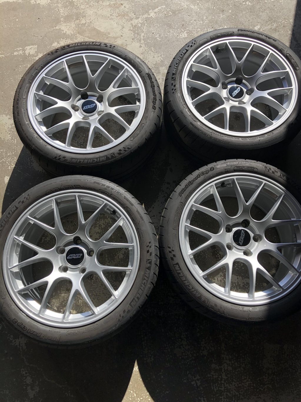 Apex EC-7 i silver 9,5/18 ET 35 5/120 Michelin Cup 2 265/35-18 Fälgar köpta 2019 nyskick ca 50 mil på gata en trackday detsamma gäller däcken håller 5 mm jämt slitna tillverkade 201803. Pris: 15000:- finns i södra skåne skickas ej. För snabbast kontakt 0708792316.