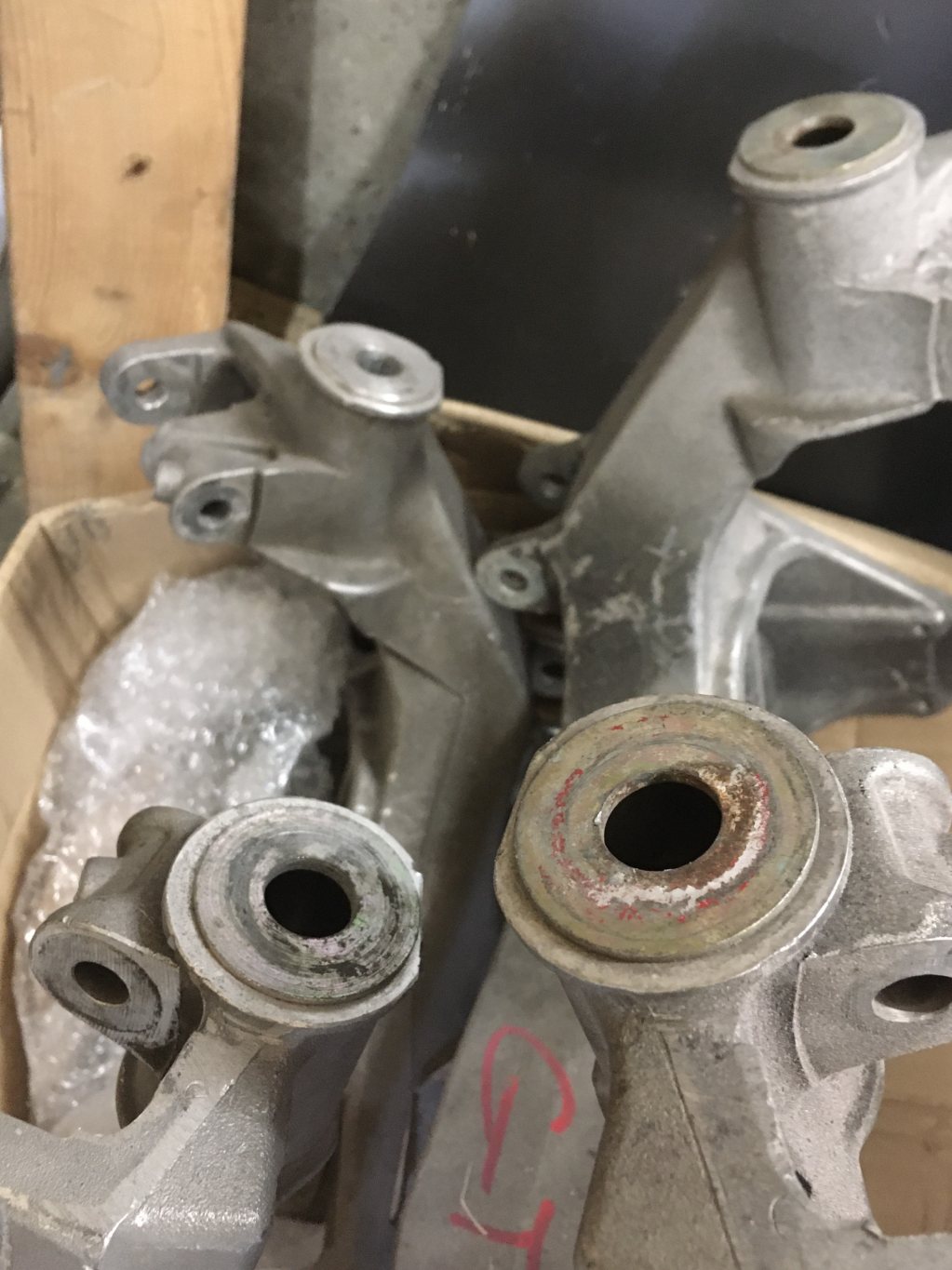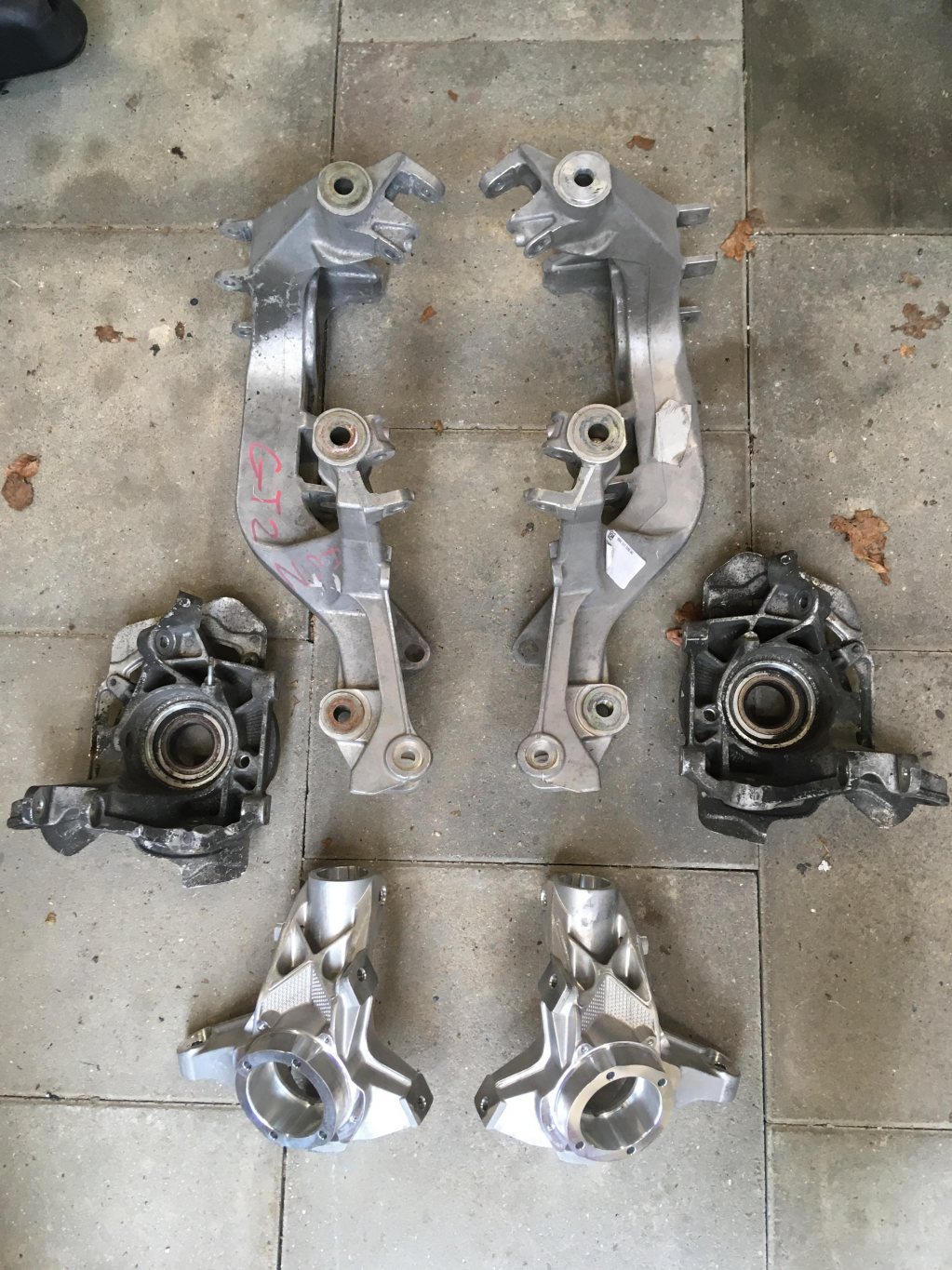 For sale due to Cup rebuild with RSR parts upgrade: Porsche 996 GT3 and GT3RS spec suspension corners. Solid bush side pieces (Used) Rear uprights (Used, new bearings required) Front uprights (NEW) In Helsinge, Denmark 11,000 DKr