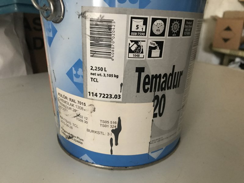 Är det brådis? Jag har ingen burk här, men kan sticka förbi där de står i slutet på veckan och kolla namn. Jag tror att om du hade ringt en färgnasare och frågat efter polyurethanlack från temadur så finns det nog bara en. Möjligtvis olika glanstal. Den går att spruta också, blir väldigt fint. Men har du rost, så kommer du behöva lägga slipgrund om du ska ha finish. Det blir ganska mycket jobb plötsligt. Hagmans har iof rätt ok sprutspackel på sprayburk som funkar bra med deras grund också. Men du får lägga flera lager innan det fyller gissar jag. |