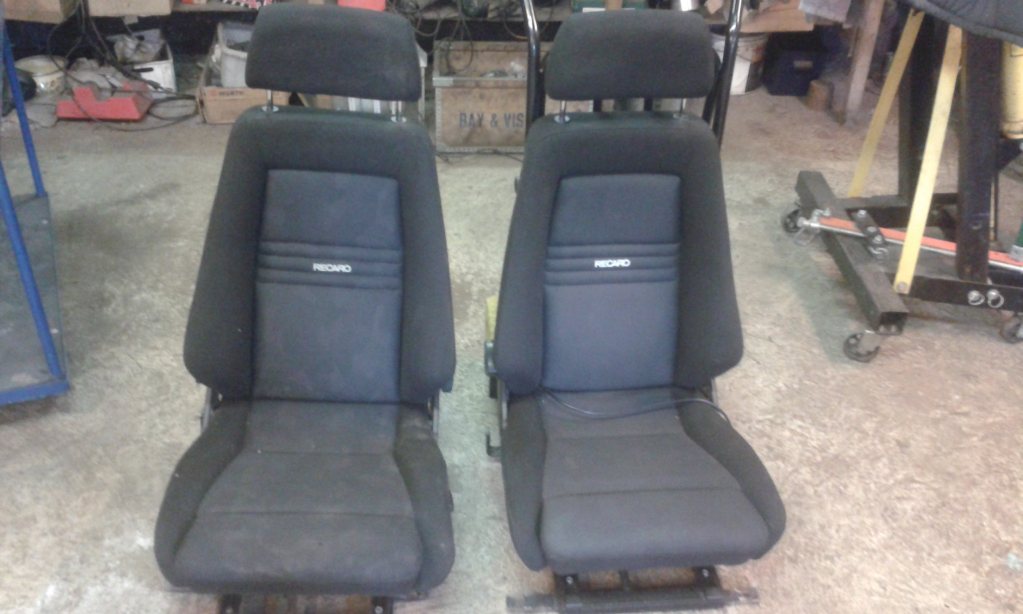 Jeg overvejer at sælge mine 2 Recaro forsæder ( Recaro specialist) , der medfolger et understel til golf 1-2 sæderne er fra 2006 og er i pæn stand, kunne godt trænge til en rens, et lille hul i forreste pude på det ene. Den forreste pude kan kores ud så der er stotte til de langbenede, Ligger i Horsholm (Danmark). Det ene er med oppuselig lændestotte. Ny pris idag ca 2000 euro for sæderne. Kan også bruges i andre gamle klassikere-BMW-Ford Escort-Capri og mange andre samlet Pris 5000 skr. Send pb ved interesse- SOLGT
