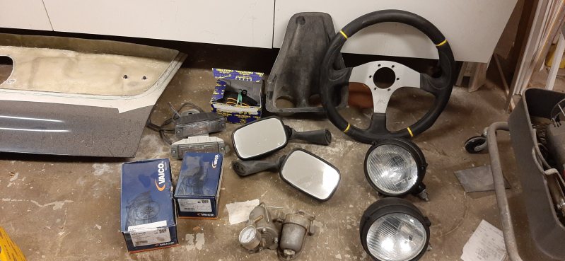 - Ratt Luisi - Insugstratt glasfiber, SÅLD - Blinkers Golf 1, rökfärgade 2st - Backspeglar välvt glas 1par - Hella huvudstrålkastare 2st, SÅLD - Filter King, 2st varav en med manometer, SÅLD, och anpassad för lågt tryck. - Bromsbelägg Porsche 996, nummer: 996.352.949.03 samt 987.352.939.01 ej till de med brembo ok. Ge ett bud annars slänger jag det.