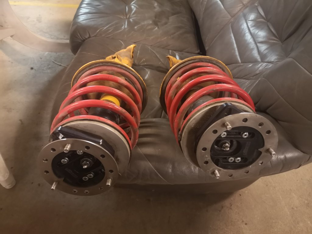 Jag har ett par gula Koni med H&R fjädrar och Millway camberplattor till salu. Dämparen har sett bättre dagar rent estetiskt. 2800kr. Finns i Södertälje.
