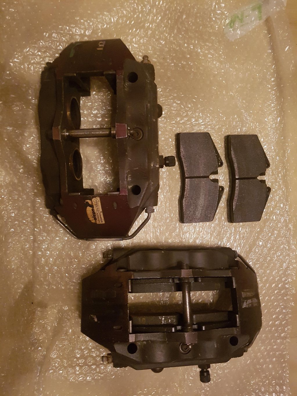 2st alcon bromsok med belägg( som nya belägg) Köpte dem med org alcon kartonger med etiketter men det va EJ den modell som stod på etiketterna (355mm). Tror de mer passar 330mm ( iaf mindre än 355) Det är "öron" på dem för montering (ej radial) Tänker 6000kr med belägg. Eller om någon skulle ha 300-330mm skivor med alu nav ( 5x112) att sälja 0763091088