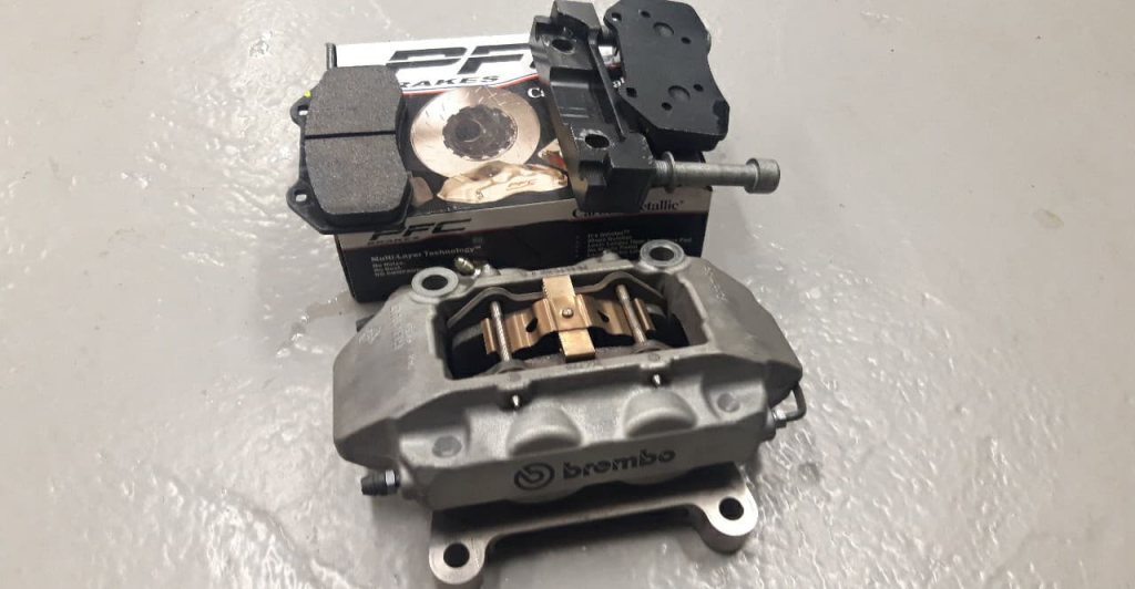 2 st nästan nya Brembo 4 kolvs ok för 28 mm bromsskiva. Bromsoken och bromsklossar har gått ett testpass. Sedan så finns det en uppsättning nya i kartong som medföljer. Bromsokfästen finns för Ford samt ett sett fästen för renault Clio. 7500 :- för allt Håkan Malmborg mo. 0706734975