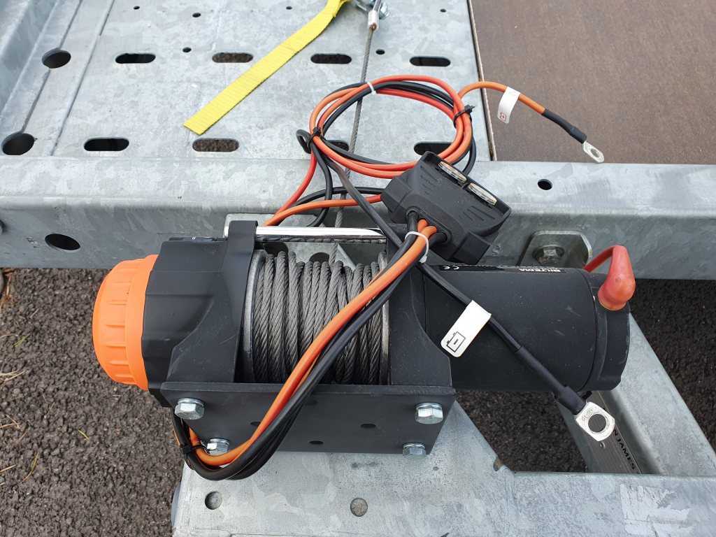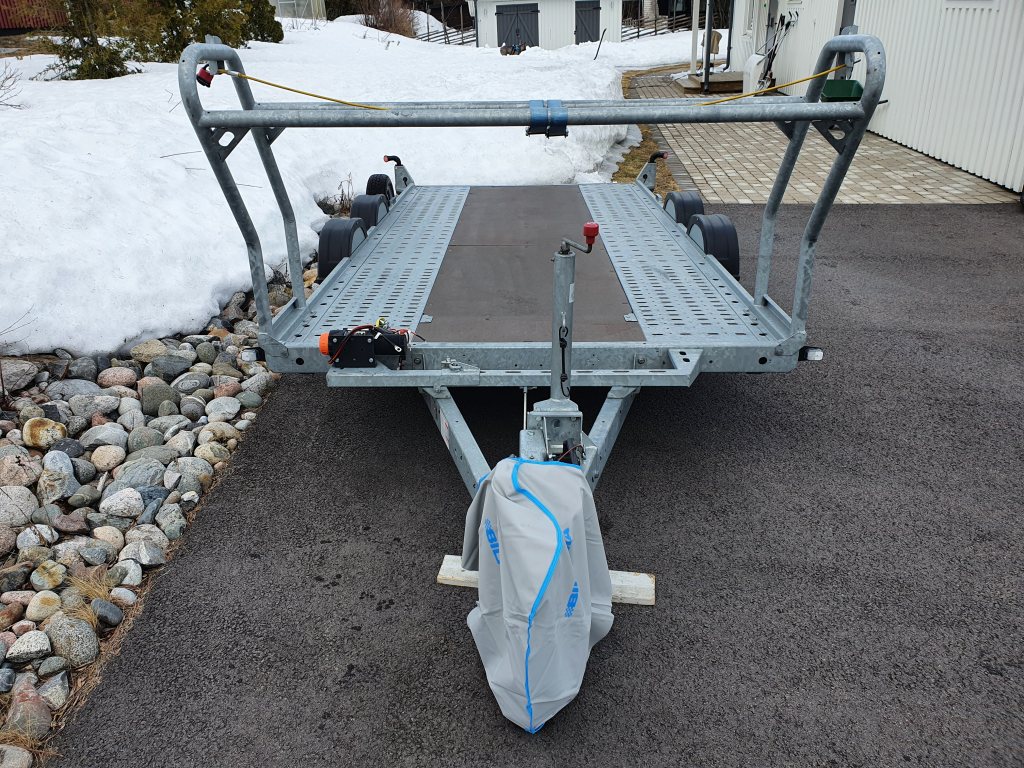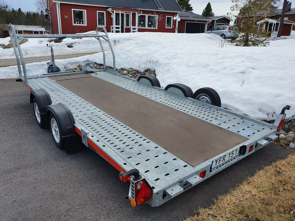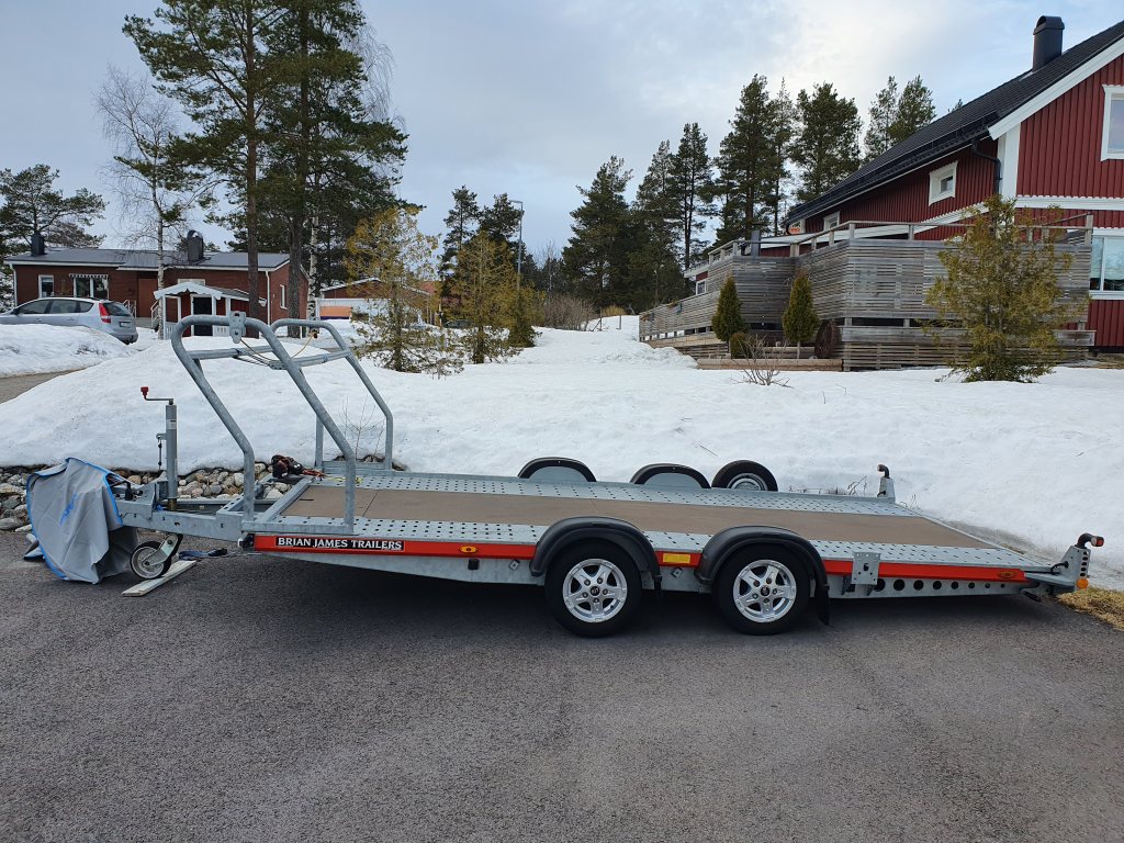 Säljer ett mycket fint Brian James A4 transporter med Hi-Line paket (däckställning med spännband och låswire, reservhjul, förvaringsfack, lättmetallfälgar, låsbar kulhandske, manuell winch) Elwinch med batteri och batterilåda medföljer, även den manuella winchen medföljer givetvis. Extra långa ramper (2,4m) lastar låga bilar utan problem! 4,5x2m lastyta Totalvikt 2600kg (Nyttolast 1930Kg) Släpet är enbart sommarkört och i mycket fint skick, uttaget i Juni 2017. Alltid tvättat/avspolat efter användning. 55000kr som det står med däck som sjunger på sista värsen, eller 60000kr med nya däck. Finns i Piteå men kan eventuellt levereras mellan Piteå och Göteborg vecka 15.