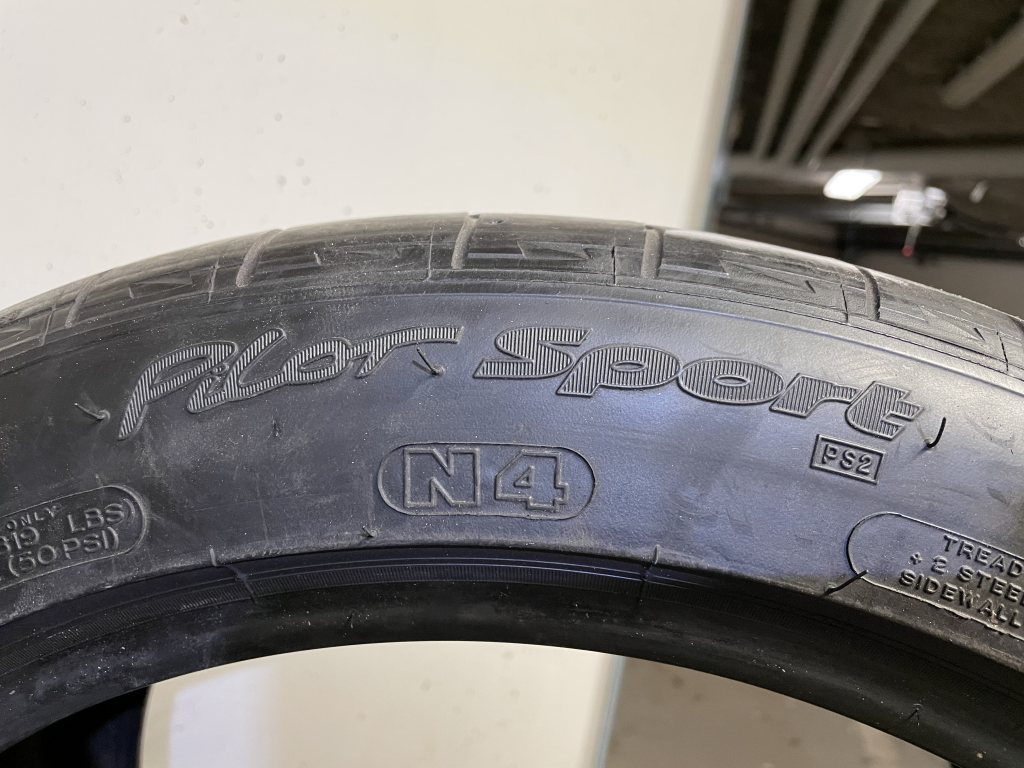 4st Pilot Sport PS2 N4 ifrån 2014. 235/40ZR18 91Y (N4) Mönsterdjup: 5mm inner, 6mm ytter. 265/40ZR18 101Y XL (N4) Mönsterdjup: 4.5mm inner, 4mm ytter. 3000kr