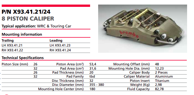 SÄLJES: Brembo P/N X93.41.21/24 8 kolvs bromsok. Nytt pris!!