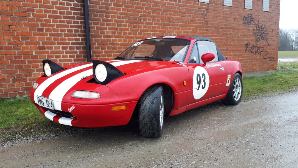 Sælges Mazda Miata MX-5 Roadsport C (nr. 93). Perfekt begynderbil, trackdaybil eller race car til langdistancelob. Bilen har kort MSCC KM Roadsport C i mange år Bilen sælges ubesigtigad. Jeg beklager det blandede danske og svenske sprog. Sig til hvis der er noget som er uklart 😊 Data Årgang 1993. Vægt 1000 kg (inkl. Fuld tank og forer på 65 Kg.) 1,6 liter motor 130 HK Unichip fra TS Motor Jacson Racing cold air intake Jacson Racing udstodning Racecat Omdragning av kylsystem (reroute) for optimeret koling Cobalt Ceramic coated header (manifold) (ny 2021) Eibach Justerbare coilovers Krængningsstabilisatorer for og bag (justerbare) Forbremser er fra 1,8 liter model (storre) med racing belägg Skålstol (Cobra) Sekspunkt sikkerhedssele (Sabelt) Aluminiumsfælge med Kumho V70 (medium) - Slidte Lille batteri (lav vægt) Plastruder i dorene Halvbur Kaleche er tæt Plusser: Bilen er mekanisk OK og godkendt til Roadsport C, i MSCC KM Korer fantastisk (omgangstider på Knutstorp omkring 1:13/1:14 - med mig som chauffor) Manifold/grenror skiftet i 2021 (Cobalt kobt og produceret i USA) Hjullejer foran er skiftet i 2021 Forrude er skiftet i 2019 Kobling skiftet i 2019 Minusser: Bilen er ubesigtigad (avgasvärder er for hoje) Der er lidt rust foran hojre fordor Sælger: Bo Reinsborg, boreinsborg@gmail.com, telefon: +4526216989