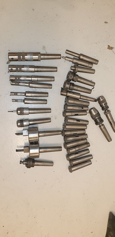 En del olika verktyg för mk4 kona, det är m14 dragtapp, 10st ursvarningsbommar/huvud i olika storlekar. 12st mk konor övergångar från mk4 och nedåt, någon dublett. 2st klämhyls hållare 2st borrchuckar Plus lite diverse annat. Pris från 300kr och uppåt, köpa allt i ett svep kan löna sig