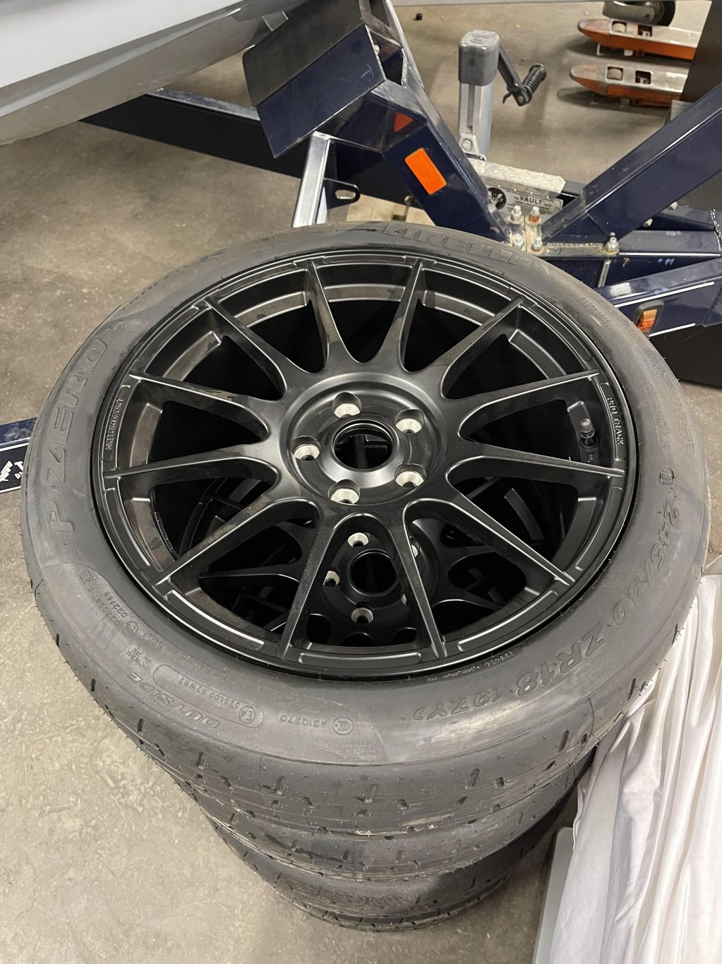 Helt nytt set 18" banhjul till Megane 4 RS. Mattsvarta Protrack 9x18 med svarta TPMS. Pirelli Trofeo R 245/40-18". Allting helt nytt! Nypris ink frakt&montering 29.500:- Mitt pris 25.500:-