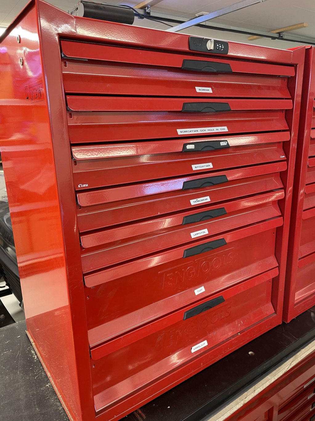Verktygsvagn i bra skick. Saknar dock hjul och handtag. 5500:-