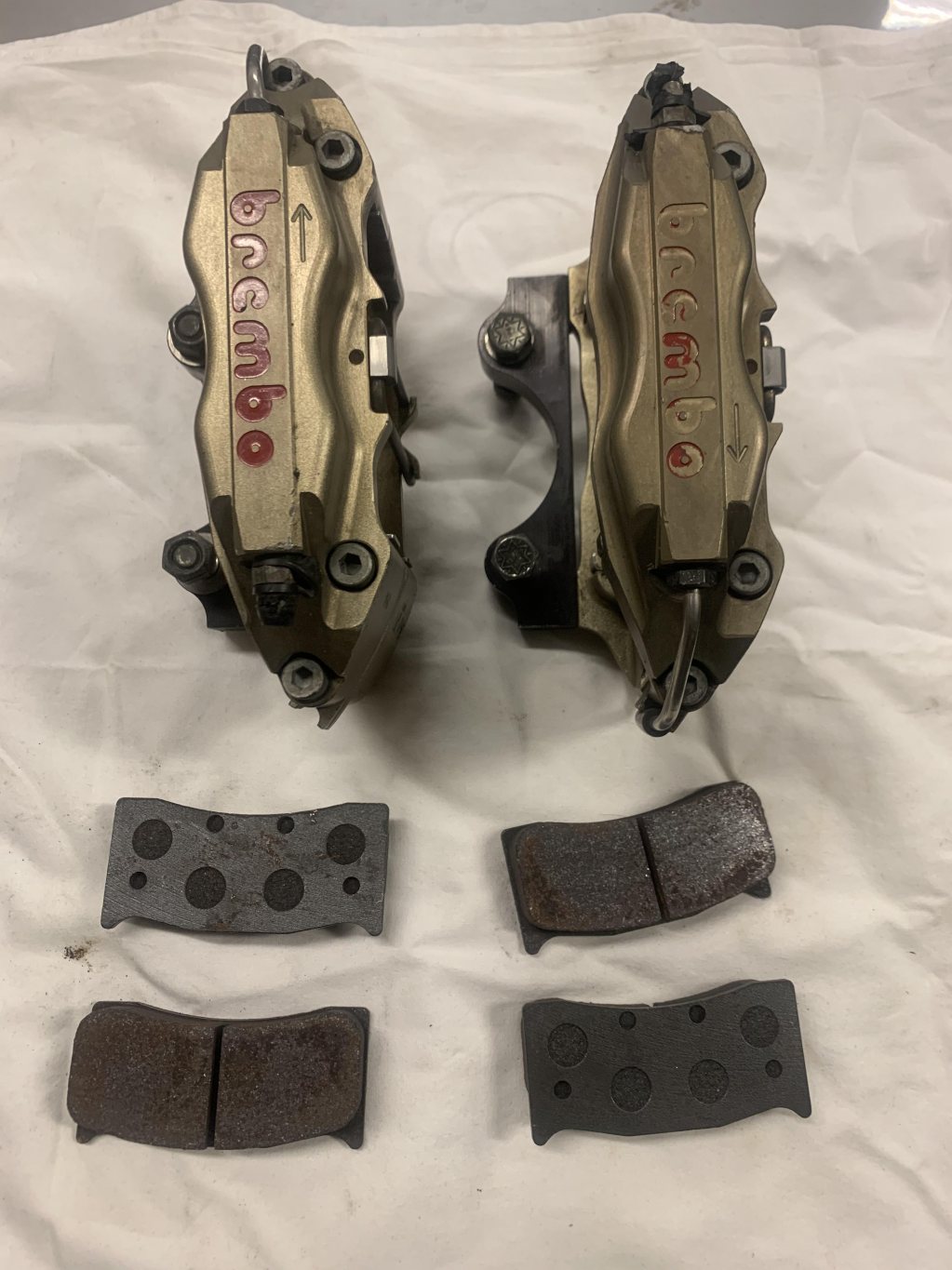 Säljer mina två Brembo-bromsok med tillhörande race-bromsbelägg (nya). Kolvarna är i titan.