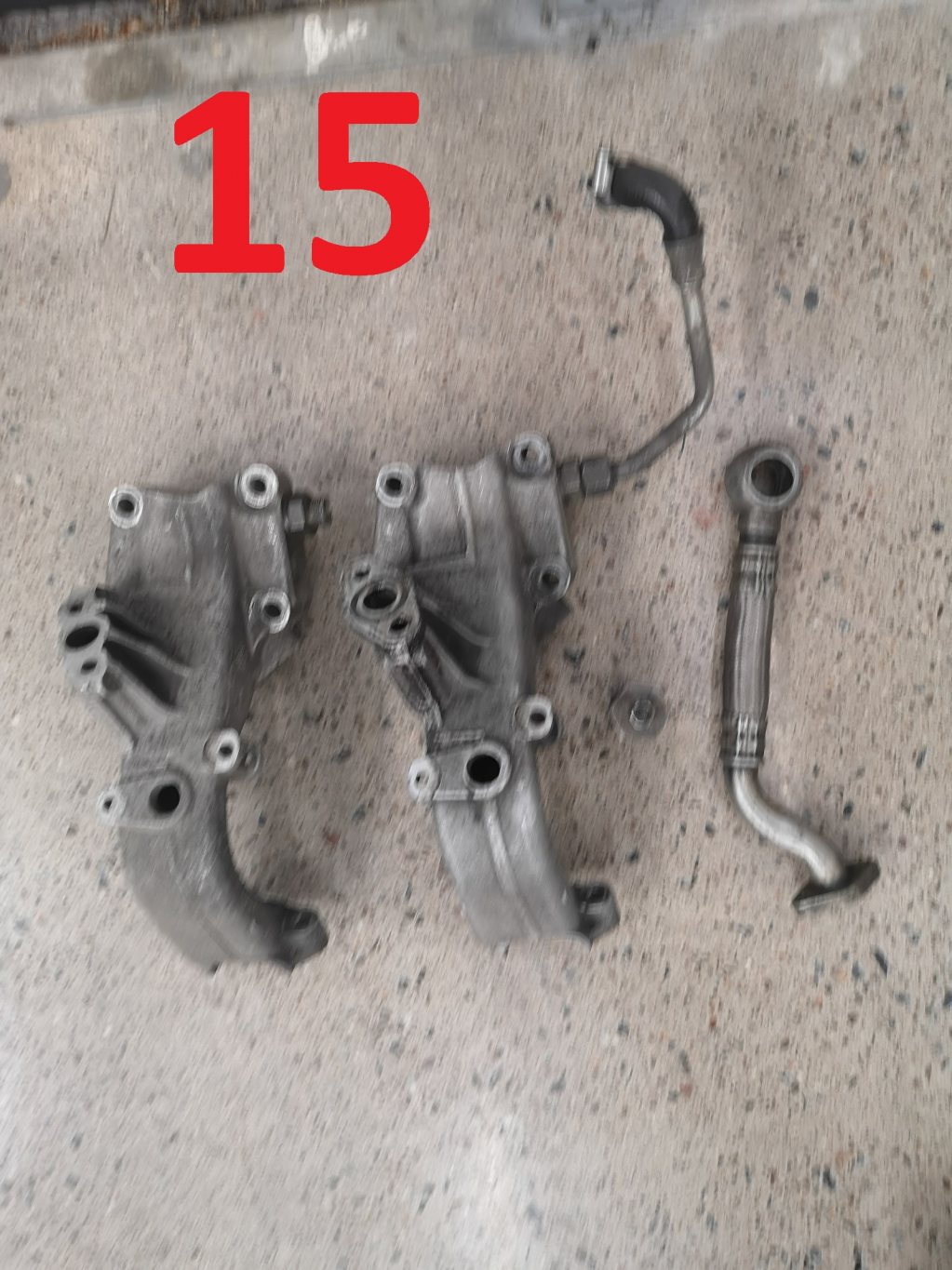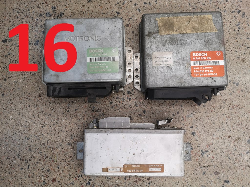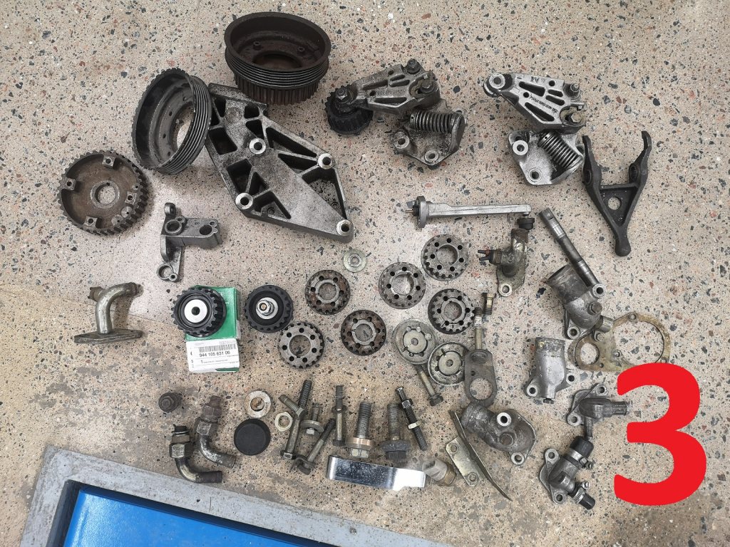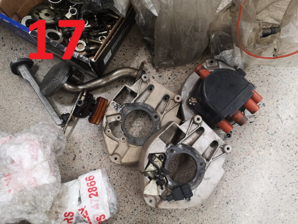 Mängder med Porsche 944 & 968 delar säljes. Öppen för bud på enskilda delar eller grupperat per bild. Är dock inte intresserad av att administrera försäljning av smådelar med lågt värde så lägg helst bud på allt i en och samma bild vid köp av smådelar. Mer delar kommer lite senare här i samma tråd. Delarna finns i Åkersberga men kan skickas förutsatt tillräckligt högt värde (typ inte en skruv för 20 kr). 1. 968 variocam-enhet (trasig men kan ev. gå att laga) 944 S2 kamkedjespännare 2. 3 st kompletta oljepumpar 2x drevsatser till oljepump 2x balansaxlar och främre hållare på motorblock 968 oljefilterhus med AN-anslutningar för extern oljekylare INKLUSIVE 3-delad övertrycksventil. Passar på 944 Turbo, S2, 968. Diverse original-bultar för motorblock 3. Diverse originalbultar såsom vevbultar osv Vattenanslutningar Balansaxeldrev 2x 8v remspännare Diverse remrullar, ett helt nytt Diverse remdrev Nedre generatorfäste, bra när man tar bort AC Plus övrigt på bild 6. Catch can, bafflad, med 3 AN ingångar, 1 AN-utgång för filter. Mocal oljetermostat AN12 Diverse motorsportprylar 2x bells för AP bromsskivor, Porsche 5x130 7. Ett par eftermarknads motorfästen i gummi. Använda ett fåtal mil Två par semisolida fästen i olika höjder. Behöver se över med nya bultar och ev. shimsas in med distanser för en originalbil. 8. Startmotor 944 Turbo 9 Tändningslås med nyckel, Porsche 944 Turbo 10. Diverse kontaktdon ECUer, 944/968/944 Turbo Snorklar för kabelgenomföring i brandvägg 11. Vattenpumpsdelar. Nya. 12. 944 Turbo insug med spjällhus 13. Två st luftmängdmätare 0 280 202 064 Tomgångsventil 14. 3st kolvar 968. 2st med RARST-stakar 15. Två stycken motorfästen 944 Turbo. Det ena nedslipat. Oljereturrör till tråg Bult till returröret 16. 944 Turbo ABS-box S2 ECU: 944.618.124.02 944 NA ECU: 944.618.121.05