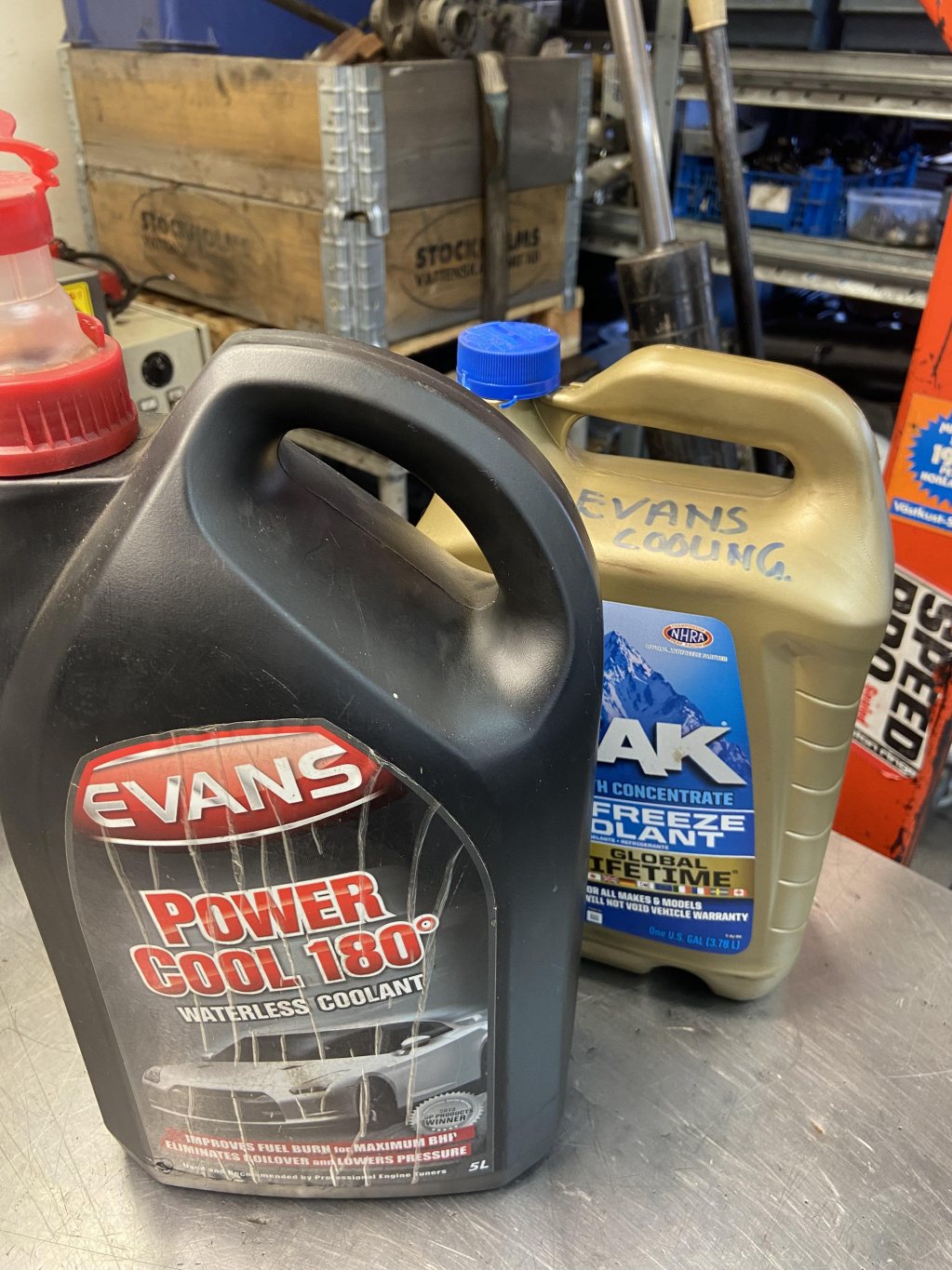Har 9,0 L Evans Power Cool 180. Pris: 700:- Har en sats tempfärg bromsskivor, ca 75% kvar. Har rört om i slla tre burkar, och allt är O.K Pris 450:- Peter Sandèn 0706/634630