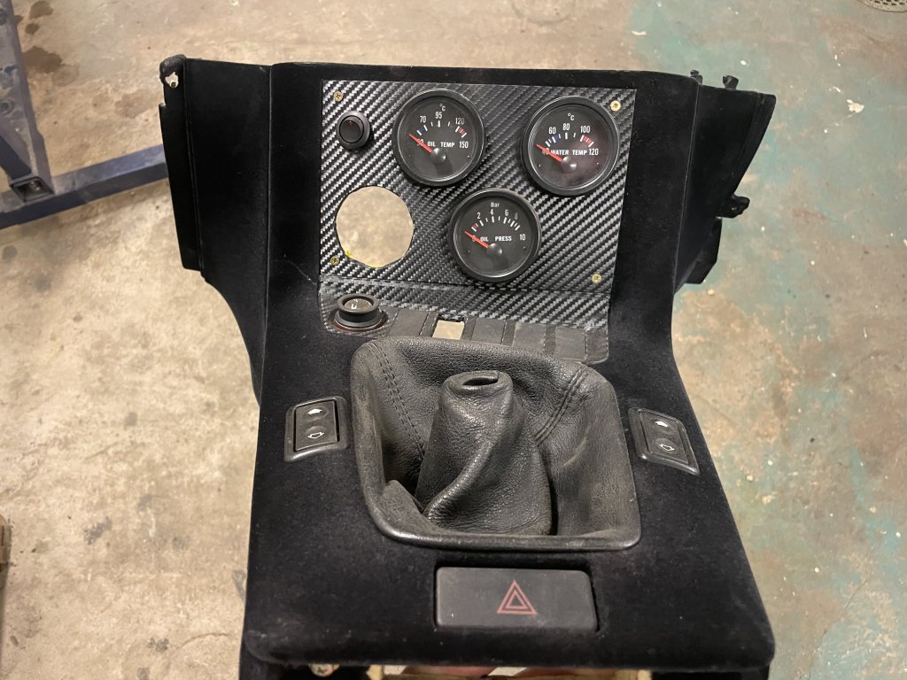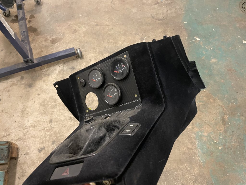 BMW e36 flockad instrumentbräda och mittkonsol. Med mätare: laddtryck, oljetemp, oljetryck, vattentemp, samt shiftlight. Pris:3500:-