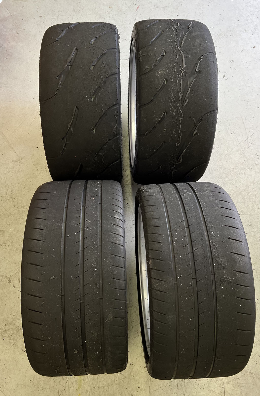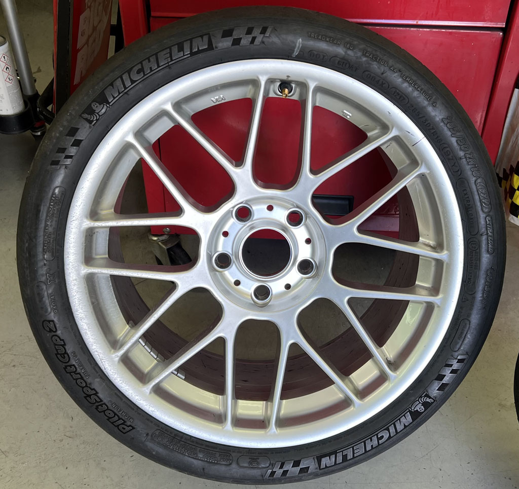 Apex ARC-8 18x9,5 ET35 Färg: Hyper Silver Bultmönster: 5x120mm Centrumhål: 72,56 Vikt: 8,5kg/st Apex centrumkåpor följer med (aldrig använda) Två av fälgarna har hälsat på i sandfållan på Mantorp och är lite "patinerade". Inget trottoarskrap eller skevhet dock. Mer info: https://www.apexraceparts.com/store/ Apex fitment guide: https://support.apexraceparts.com/hc Däck: Nankang AR-1 265/35-18 Tillverkade feb 2021 Mönsterdjup (Inner, mitten, ytter): Vänster: 2,5 4 3 Höger: 2,5 3,5 2,5 Michelin Pilot Sport Cup 2 285/30-18 Tillverkade dec 2017 Mönsterdjup (Inner, mitten, ytter): Vänster: 2,5 3 3 Höger: 2 3 3 Pris: 12000kr