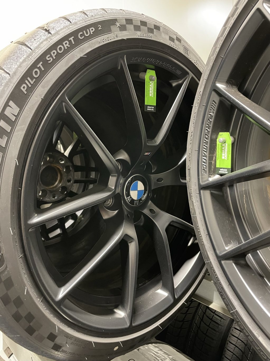 19" Original 763M i mattsvart med Michelin Pilot Sport Cup 2* Gått 1 dags bankörning, inga skador. Passar alla BMW M2 9x19 ET:29 - 245/35-19 10x19 ET:40 - 265/35-19 Prisidé: 35.000kr