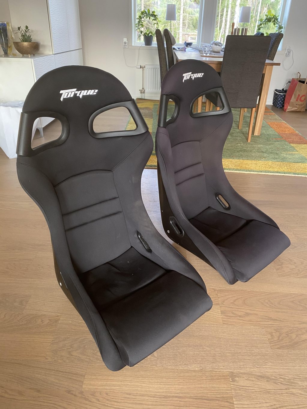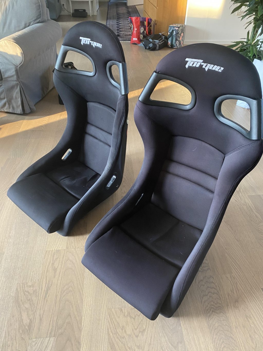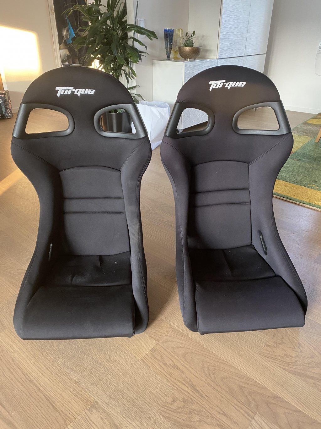 Hej, då jag har bytt till andra stolar så är dessa till salu. Torque 996 GT3 kopior i okej skick. Är lite smutsiga på bilderna men inget som inte går att göra rent. Liten skada längst upp på baksidan av ena nackstödet. Extremt stabila stolar för vad de där. Prisidé 2500kr Finns i Norrtälje men kan tas med mer centralt Sthlm. Mvh Christopher Sollerbrant