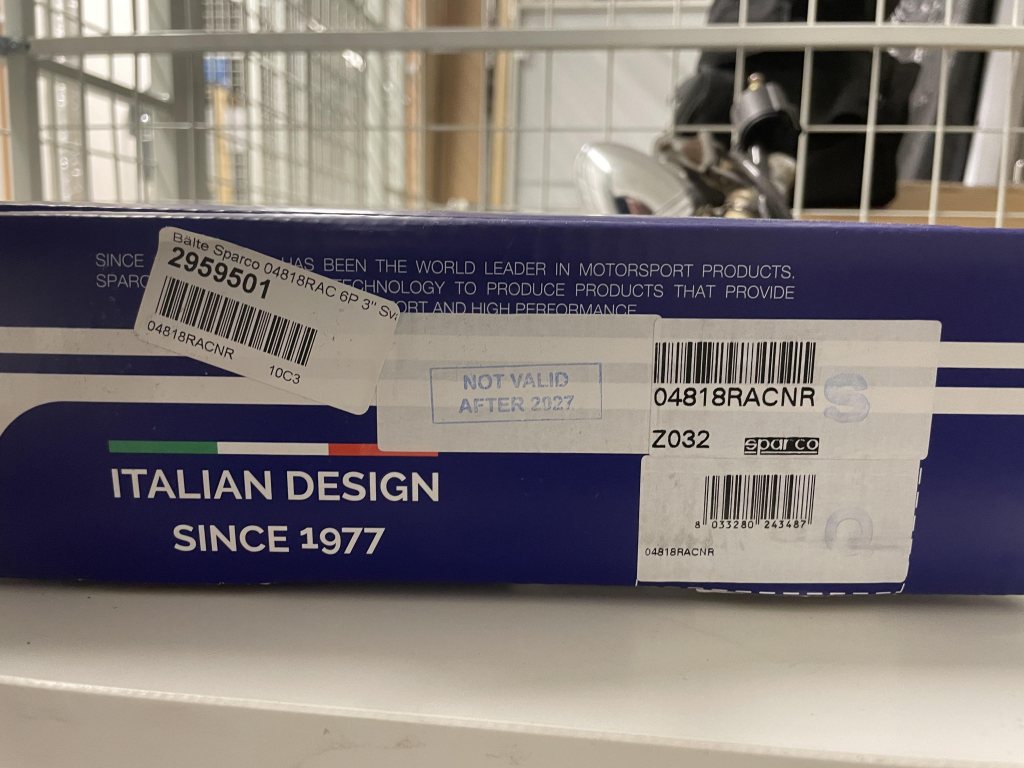 Helt nytt svart Sparco 6-punkts bälte med 3" band. FIA klassat och godkänt fram till 2027. https://www.radne.se/product/balte-s Nypris: 2790 kr Pris: 1800 kr Finns i Stockholm. Kan skickas men på köparens bekostnad.