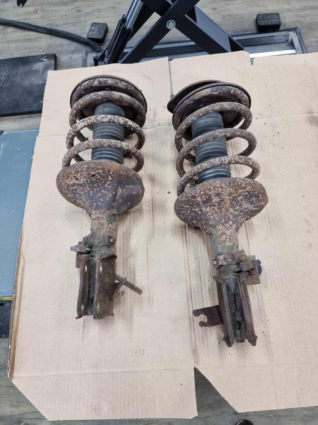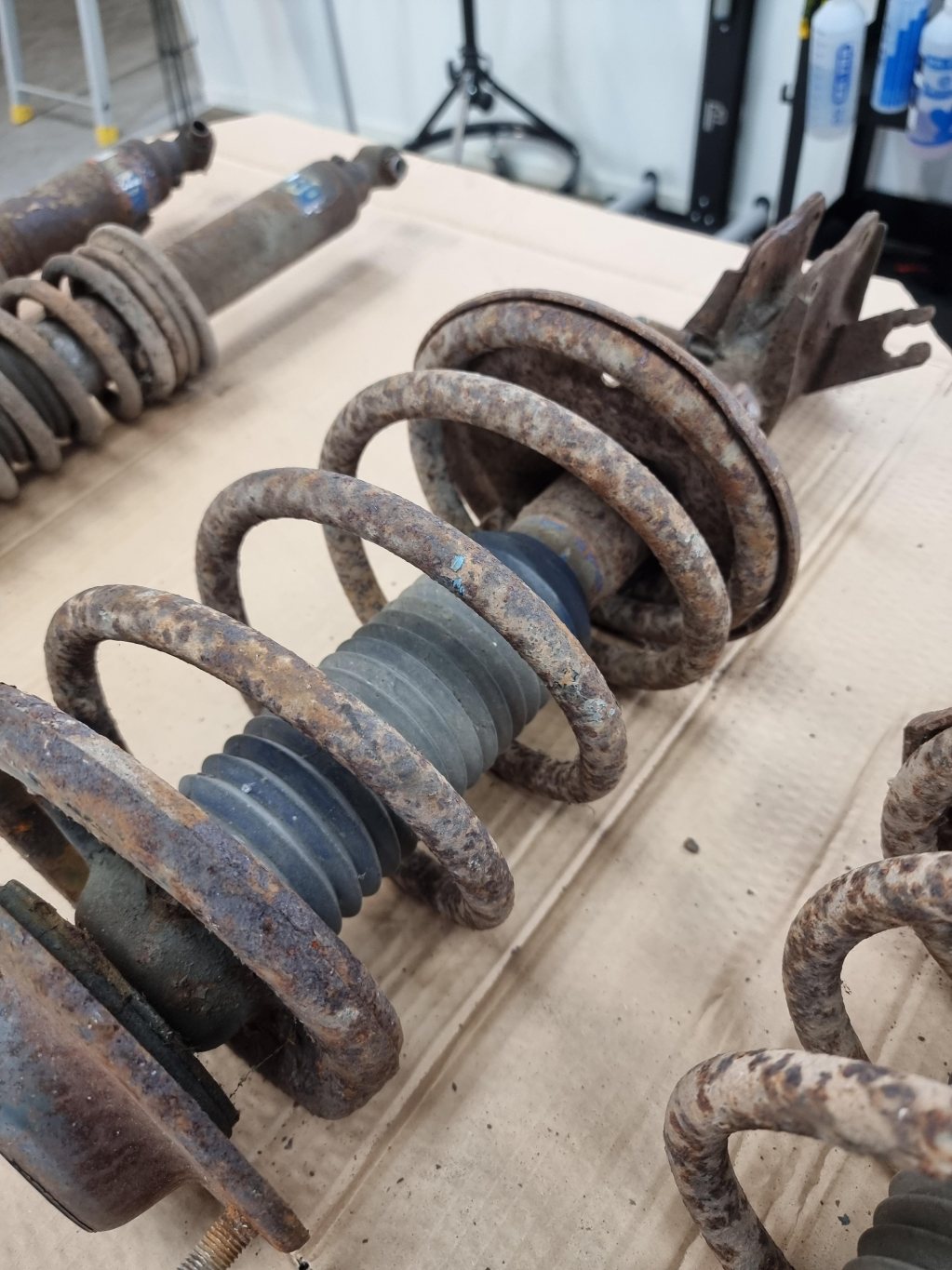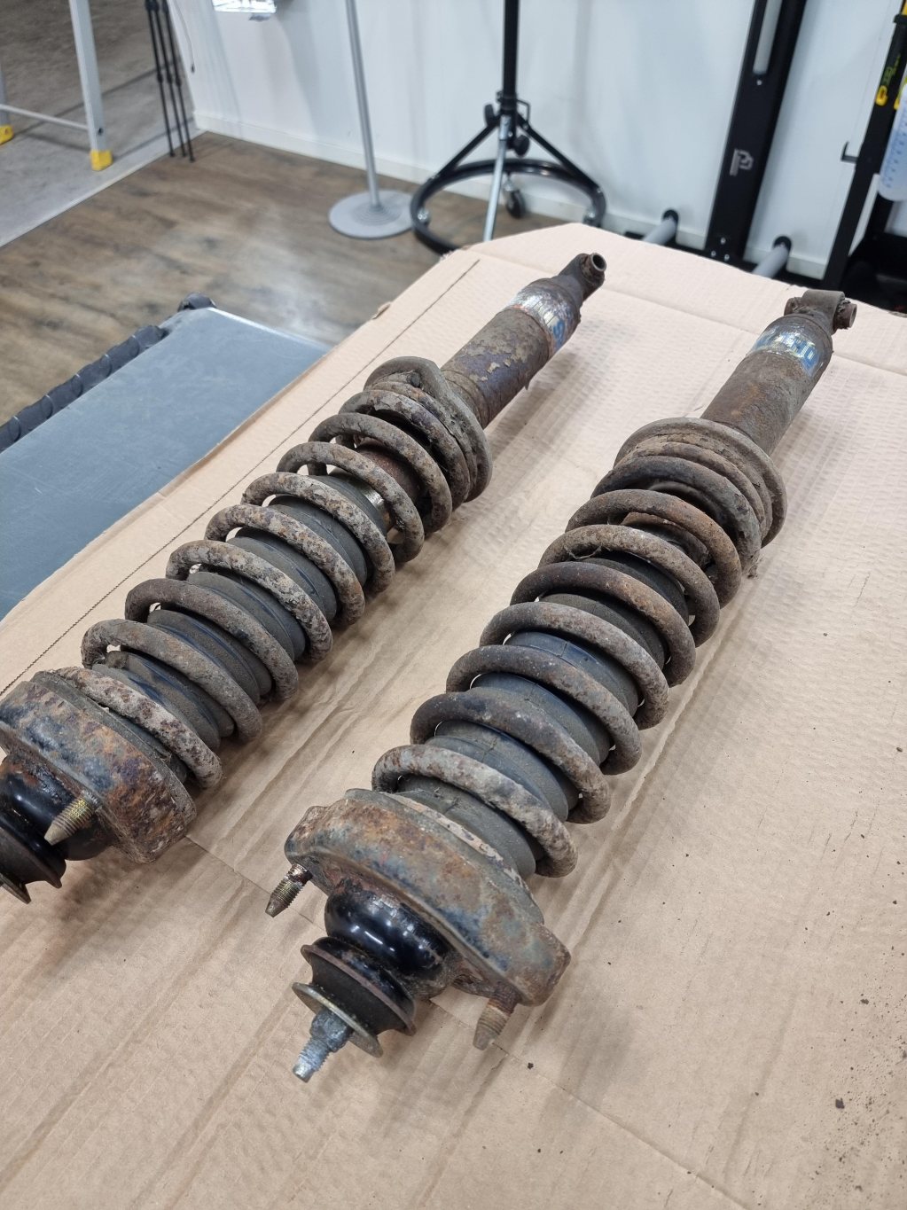 Har en uppsättning begagnade Öhlinsdämpare med sänkfjädrar till övers efter renovering av bilen. Ser inte superroliga ut med rost lite överallt men bra funktion! Något att lacka om under vintern kanske? Pris sätter jag till 4000 kr eller vettigt bud. Pontus1981(snabelA)hotmail.com eller PM här.