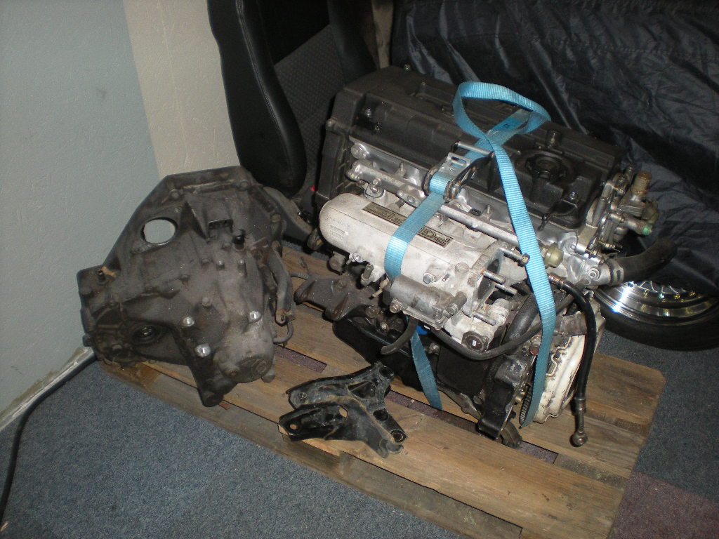 har en motor och växellåda jag inte kommer behöva Det är en honda b16a1 vtec 150 hk + y 21 växellåda (obs ej lådan på bild) motorn är totalt genom gången och anpassad för övertryck, med spacer platta mellan topp o cyl. Ta bort denna o den är som en vanlig sug motor. 18000 kr