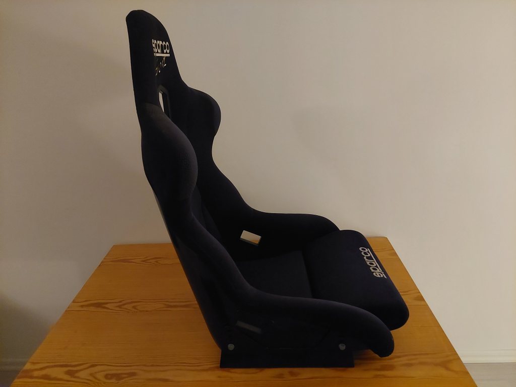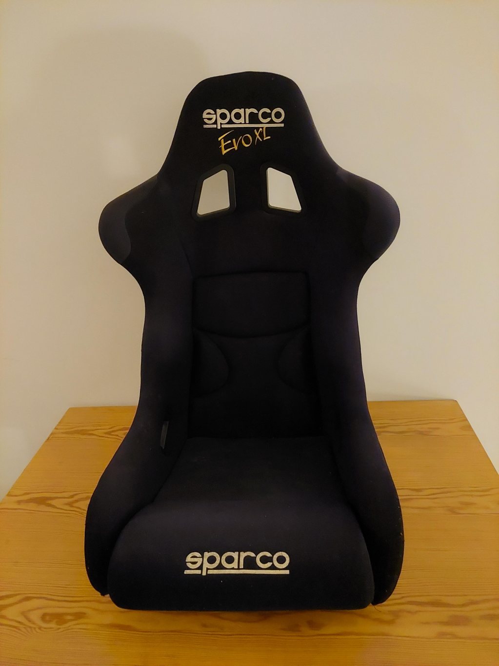 Sparco evo XL stol. Bra skick med sidofästen. FIA datum utgången. Några pyttesmå hål längs fram på vänster insteg. Liten bit som gått ur plasten runt ena bälteshålet. Finns 3 mil norr om Göteborg. Skickas ej. Pris 2000kr eller bytes mot evo 2 /L stol.