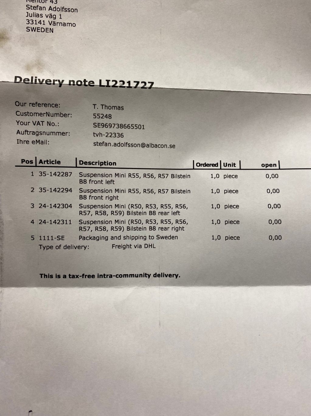 SÄLJES: Nya stötdämpare Bilstein B8 Mini cooper R56