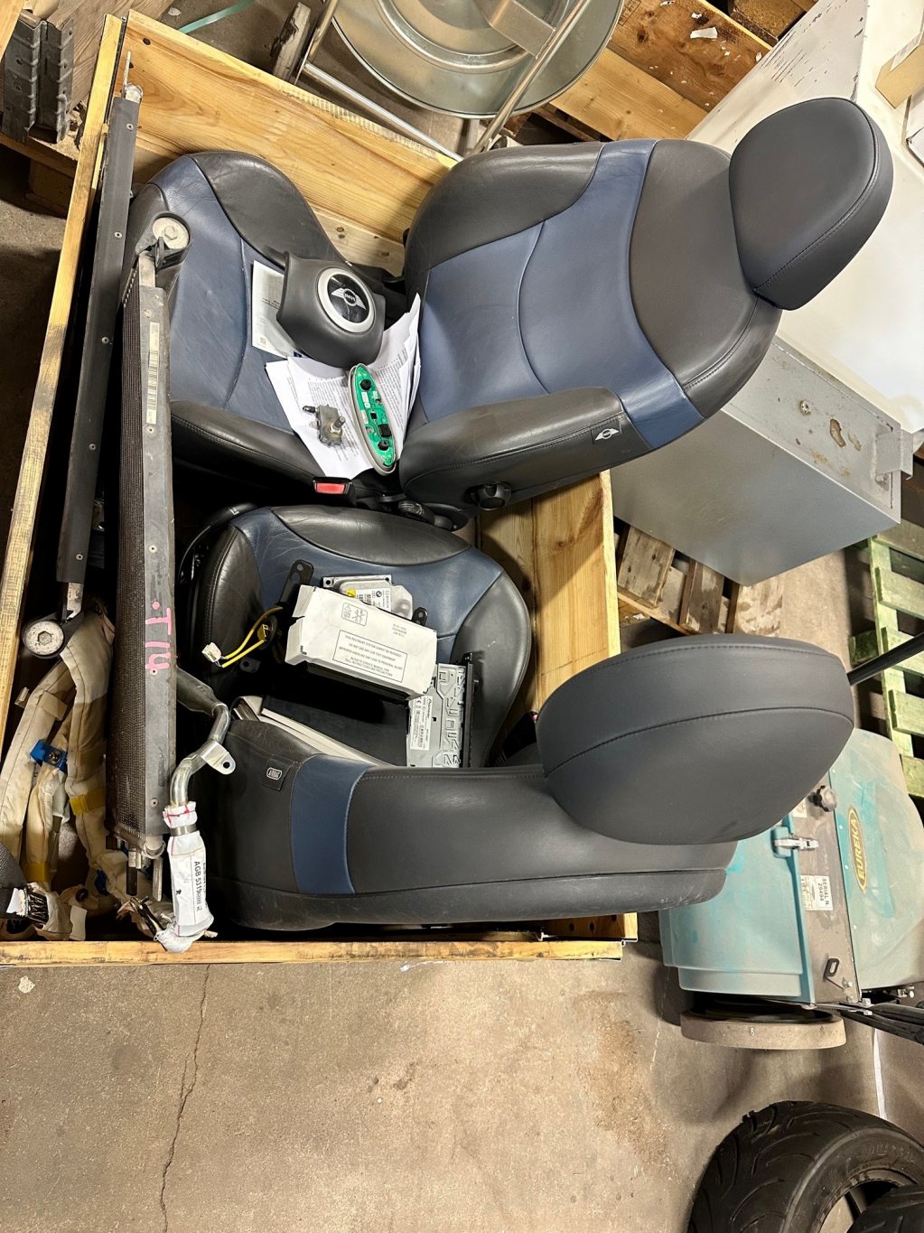 Fyndläge ! diverse delar till en Mini cooper S R53 2002 sportstolar i skinn med airbag A/C kompressor kylare till kompressor diverse olika Airbags Originalratt Taklucka m.m ring om det fattas något så kanske vi har !