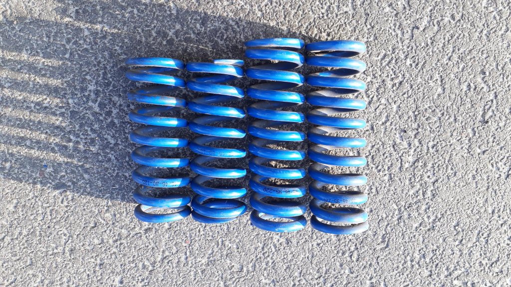 Säljes två par fjädrar som suttit på en Opel Speedster. Fjäderdata 46/46-80 N/mm-185 mm och 46/46-95 N/mm-220mm. Pris idé 200 kr.