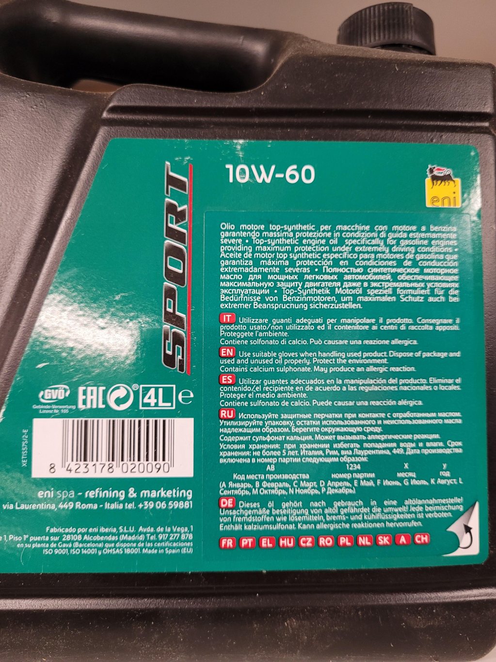 SÄLJES: 10w-60 Eni Racing Olja 4L