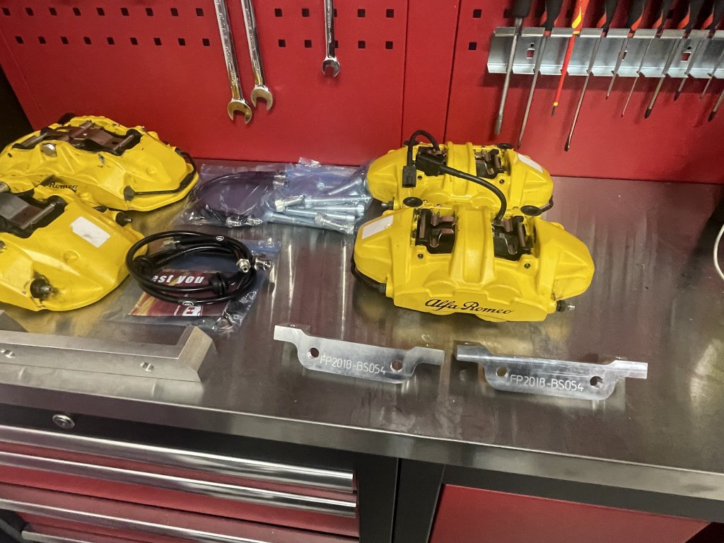Gula Brembo ok, 6 kolvs fram och 4 bak.