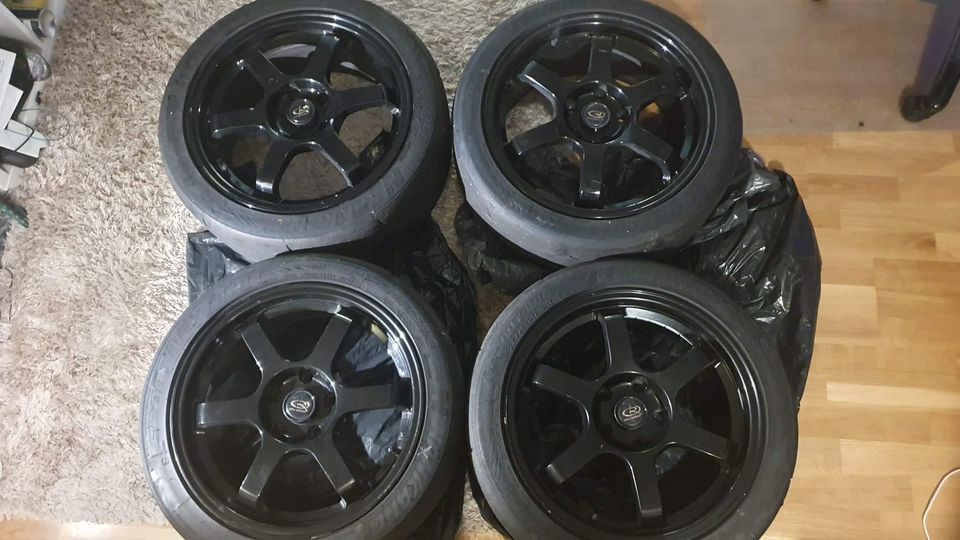 Hej, Säljer 4st Rota Grid 17x7.5" 5x114mm ET45 och de Nankang AR-1 däcken som är monterade på dessa fälgar. Fälgarna ska väga 7,8kg utan däcken. Har varit använda så kan finnas lite repor och lackskador. Har varit monterad på min Honda Civic EP3 Däcken har varit använda på banan, två av däcken är nästan helt slut och de två andra har lite mönster kvar. Har max 1 eller 2 bandagar kvar i sig. Då två av däcken knappt har något mönster kvar. Centrum hubbar/keps har en tendens att åka av, rekommenderar just nu inte att de är monterad när man kör med fälgarna. Jag har kört utan dessa Man får med sig muttrar som man behöver ha för att montera dessa fälgar Hjulen finns i Göteborg Har ingen möjlighet att skicka dessa Kommer att vara vid timeattack.nu gelleråsen, Lördag 26 Augusti Priset är just nu 6000kr
