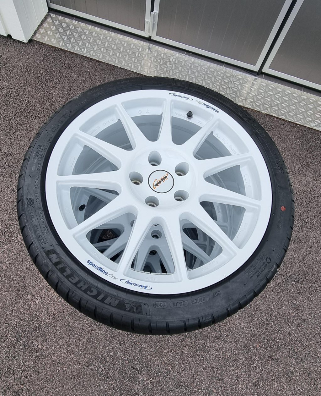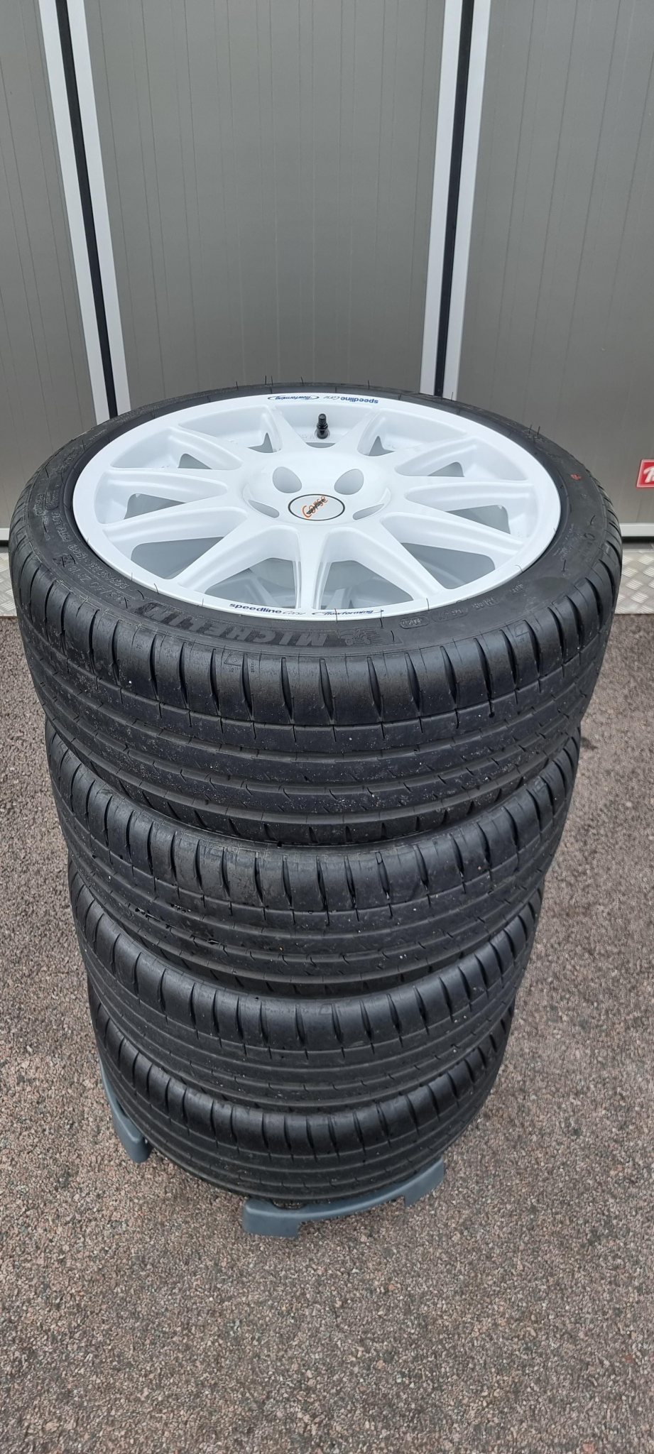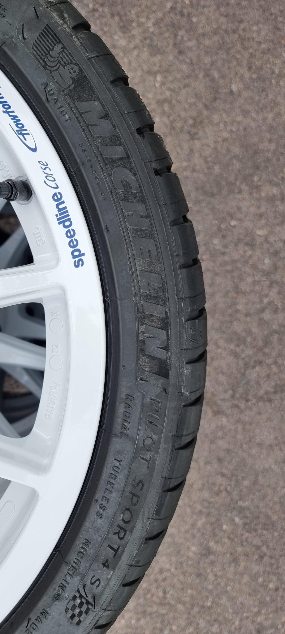 Speedline Corse 8x18" 5x114,3 Et35 med Michelin PS4S 225/40 18" Använda 1 pass i blött på Gelleråsen på en GR Yaris, så helt i nyskick på både däck och fälg! Däcktryckssensorer sitter även monterade. 12000Kr (prutat å klart) Finns i Piteå men kan eventuellt levereras mellan Piteå och Knutstorp i mitten av September.